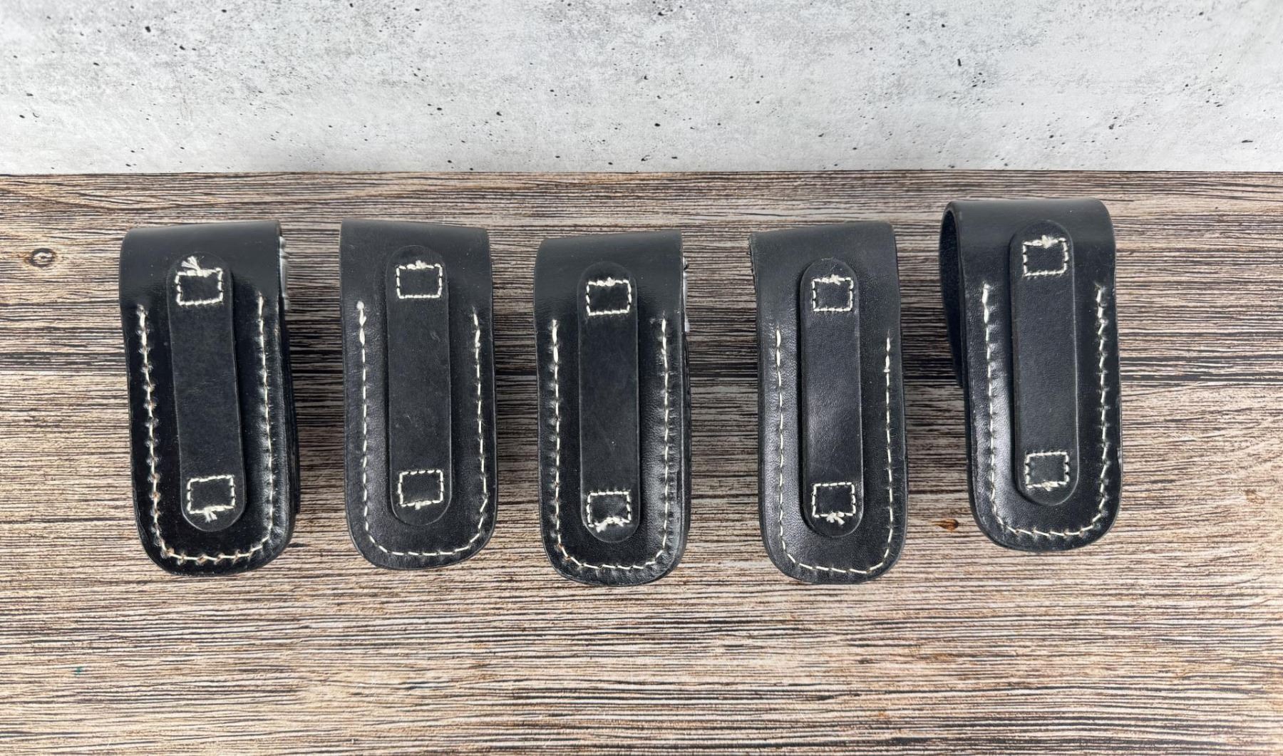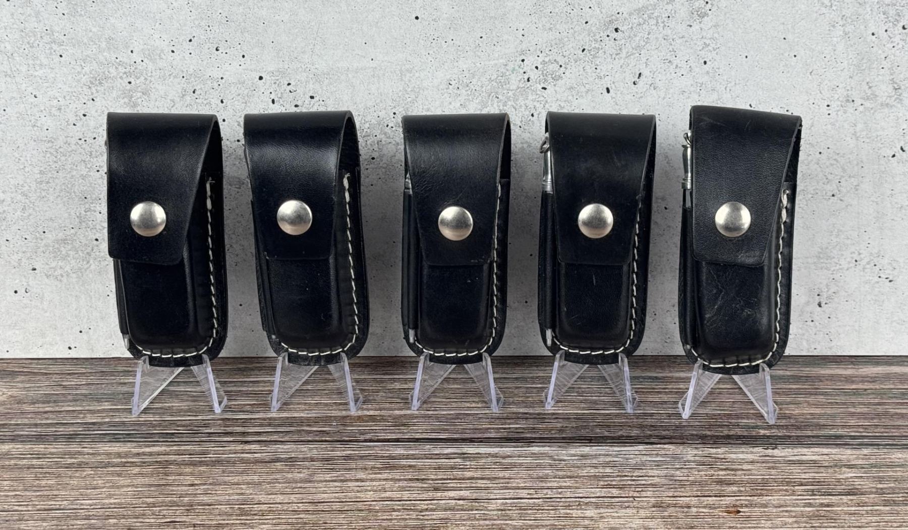 Group of five, with sharpening rods. 4 3/8" long by 1 7/8" wide.
