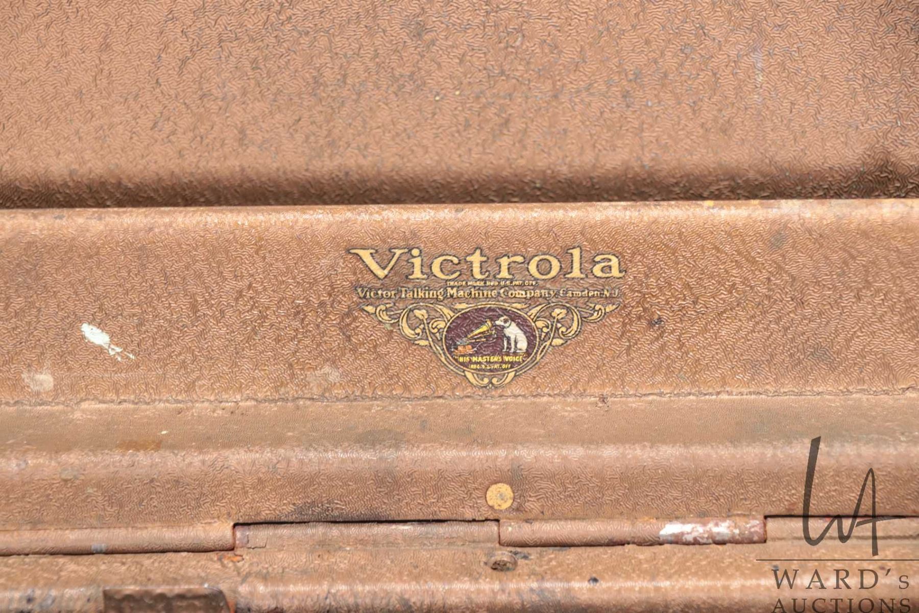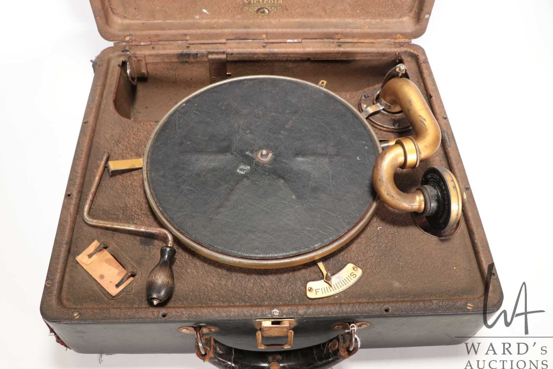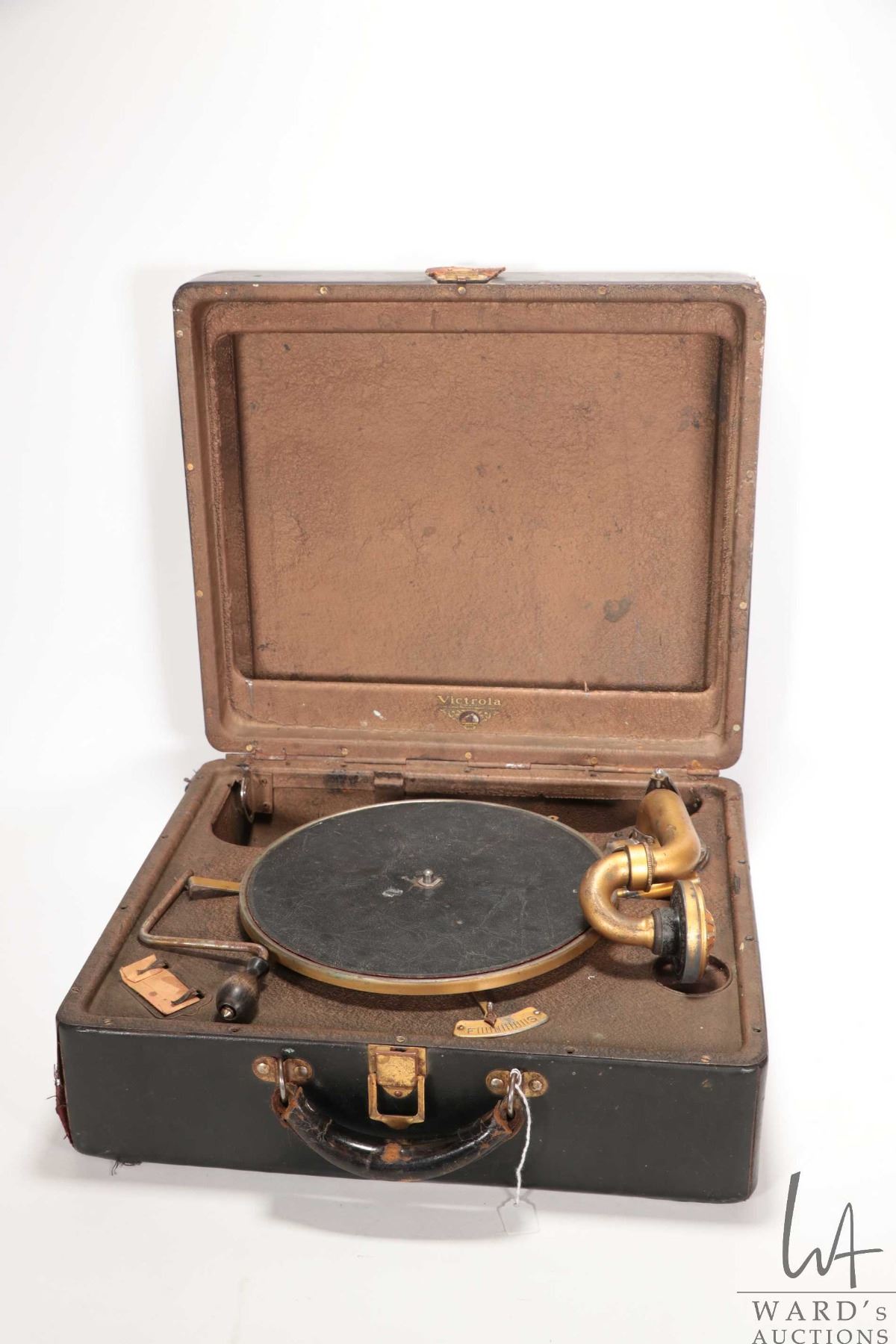 Victorola portable phonograph in portable case, working at time of cataloguing, needs new needle