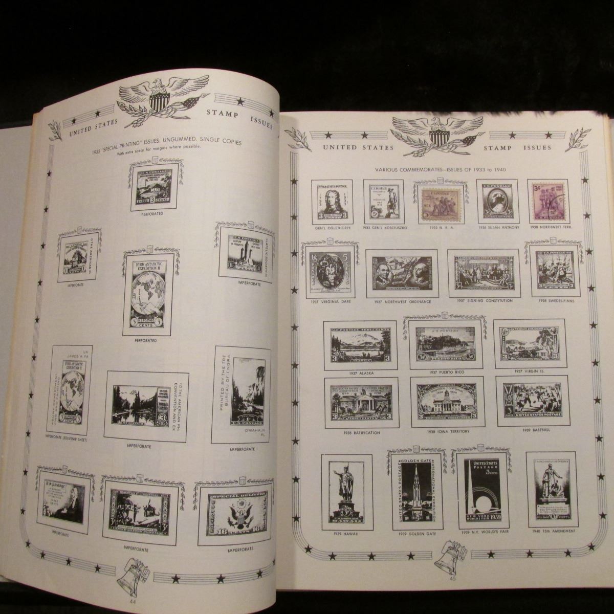 "Victory United States Stamp Album with full size Illustrations" and a large assortment of U.S. Postage Stamps.