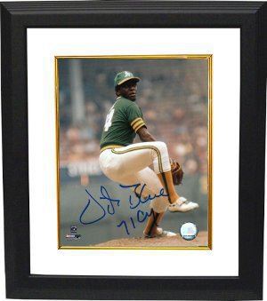 Vida Blue was a power pitcher that worked fast and pounded the strike zone. He possessed a breaking curveball that he threw on occasion and an above average change-up, but his signature pitch was a blistering fastball that dialed up to nearly 100 miles per hour. He no-hit the Minnesota Twins, 6-0, at Oakland-Alameda County Coliseum, with the lone baserunner being Harmon Killebrew, who walked in the fourth inning. Blue had a 24-8 record in 1971, winning both the Cy Young and MVP awards. Vida Blue has hand autographed this Oakland A's 8x10 Photo with 71 CY inscription. Custom White Mat and Premium Black Color Frame. Certificate of Authenticity from Athlon Sports.