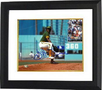 Vida Blue was a power pitcher that worked fast and pounded the strike zone. He possessed a breaking curveball that he threw on occasion and an above average change-up, but his signature pitch was a blistering fastball that dialed up to nearly 100 miles per hour. He no-hit the Minnesota Twins, 6-0, at Oakland-Alameda County Coliseum, with the lone baserunner being Harmon Killebrew, who walked in the fourth inning. Blue had a 24-8 record in 1971, winning both the Cy Young and MVP awards. Vida Blue has hand autographed this Oakland A's 8x10 Photo. Certificate of Authenticity from Athlon Sports. Custom White Mat and Premium Black Frame as shown.