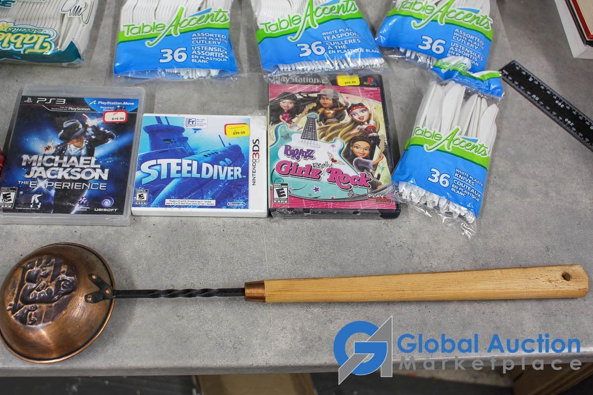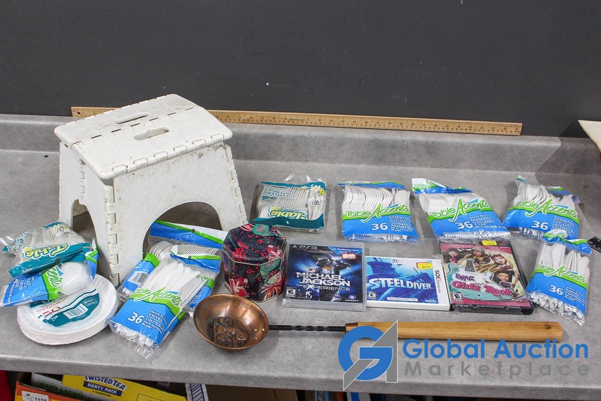 Video Games, Plastic Cutlery & Foldable Step Stool
