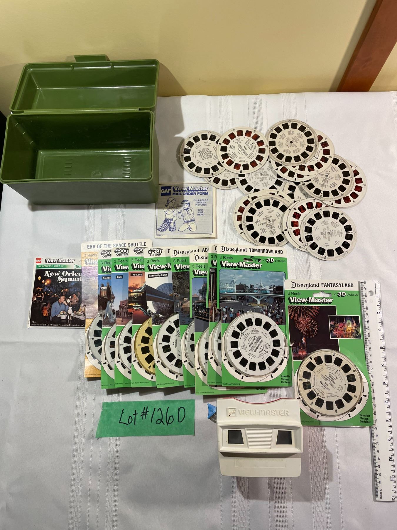 (1) Viewmaster and 45 Reels, 30 reels from Disneyland and Space Shuttle and 15 Various Children Stories Others