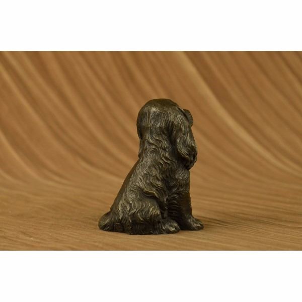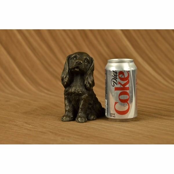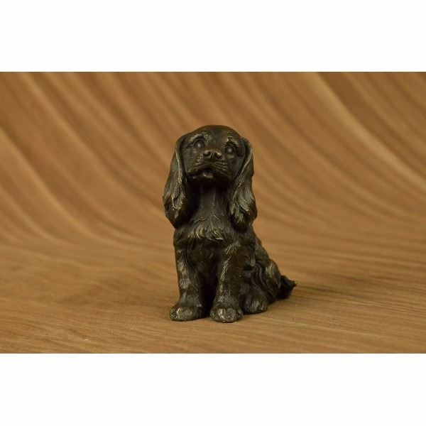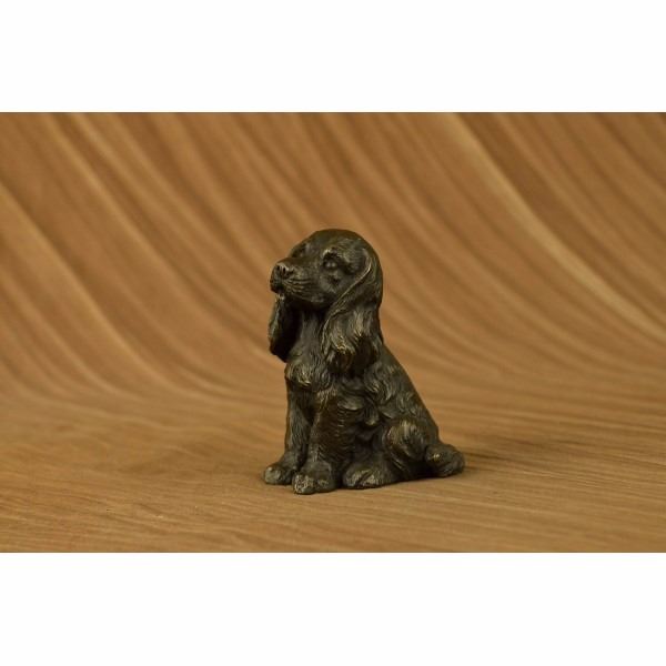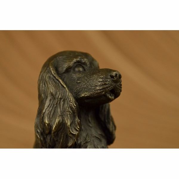 This cocker spaniel has amazing details he looks as if he just came back from the lake looking for his master to throw the ball again. He stands attentively and looks steadily at the ball his eyes are fixated to its every movement. Like a true water dog and loyal companion you will always find him dedicated to whatever he does. This is an amazing depiction of the bond between man and dog. Get one to show the dog lover in your or a fellow friend. This sculpture is mounted on a black marble base in a gorgeous brown patina. Condition: This sculpture is in a perfect condition. Bronze Dimensions :Height 6" x Width 4" Weight : 3 LBS Inventory : 74YDW0422347