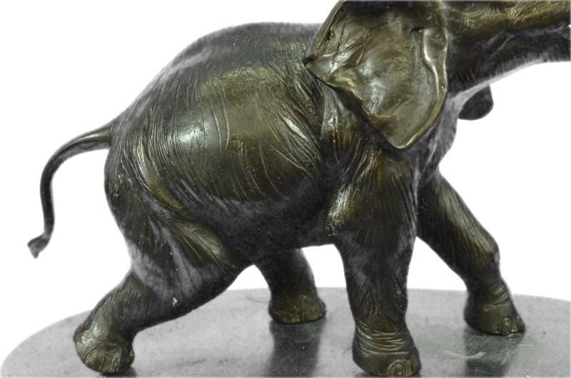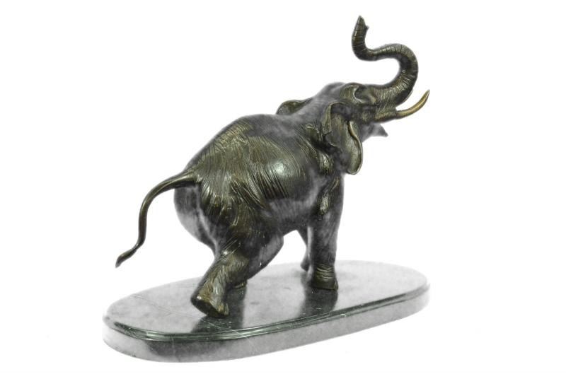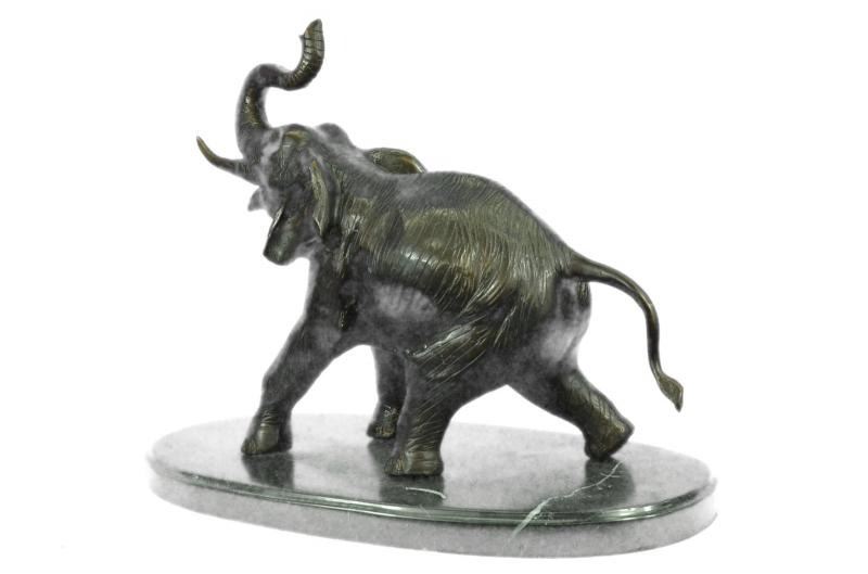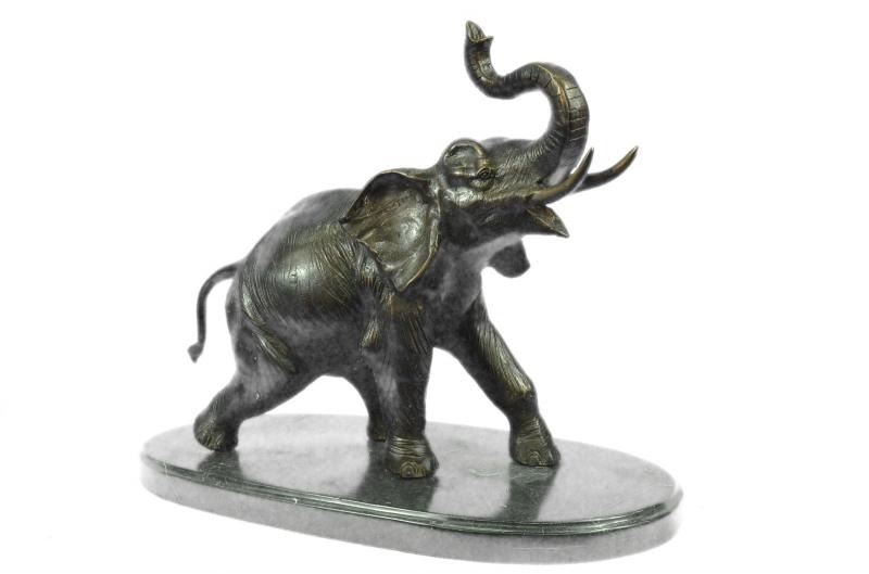 He walks proudly through the dusty plains lifting his trunk up towards the sky while letting out a loud elephant trumpet to let his presence be known. His legs are thick like the pillars of a palace and his body sits with ease on top of them. His tusks are fully grown and his ears flap scaring off the flies. This is a beautiful bronze sculpture of a wild elephant being content on the wide-open plains. This sculpture was cast using the Lost Wax Method and has a two-tone brown patina. Dimensions: Height 13 X Width 17 inches. Weight: 17 LBS.