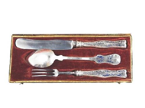 Silver, 75 g. Engraved, chiselled and painted enamel decorations on the terminals.Original case. Marked: Vienna, 1856, Thomas Dub. Neuwirth: P. 2270.
