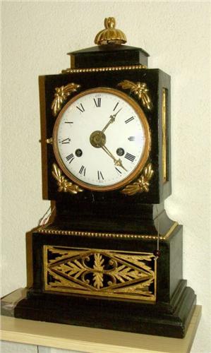 Pendule viennoise, cabinet en bois laqué vert avec décors dorés, sonnerie quatre quarts et répétition à la demande, époque 1830