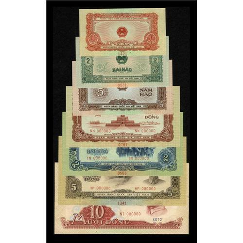 <B>Viet Nam</B></I> 1; 2; 5 Hao; 1; 2; 5; 10 Dong 1958 Pick 68s-74s Specimens<BR> These are well preserved specimens. <B>Gem Crisp Uncirculated.</B></I><BR><BR><b>Shipping:</b> Coins & Currency (<a target="_blank" href="http://www.heritageauctions.com/common/shipping.php">view shipping information</a>)