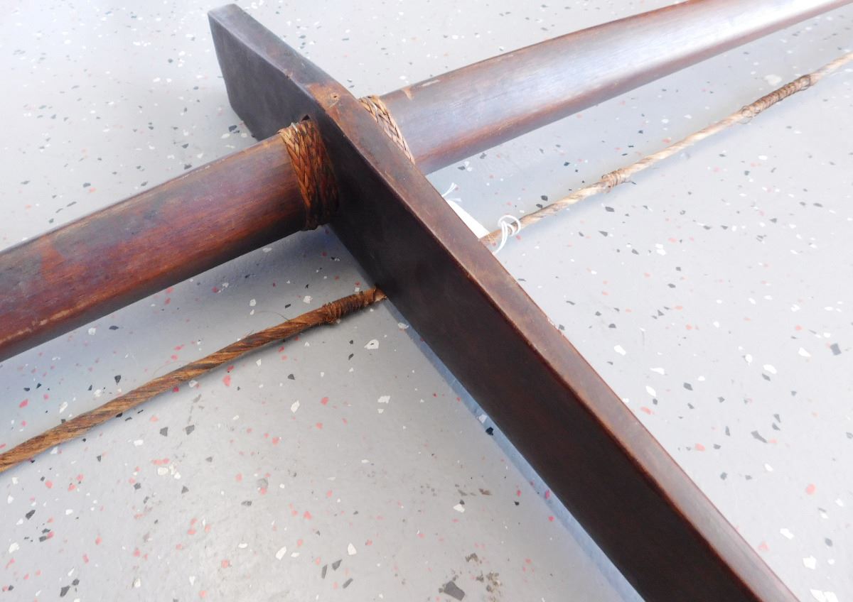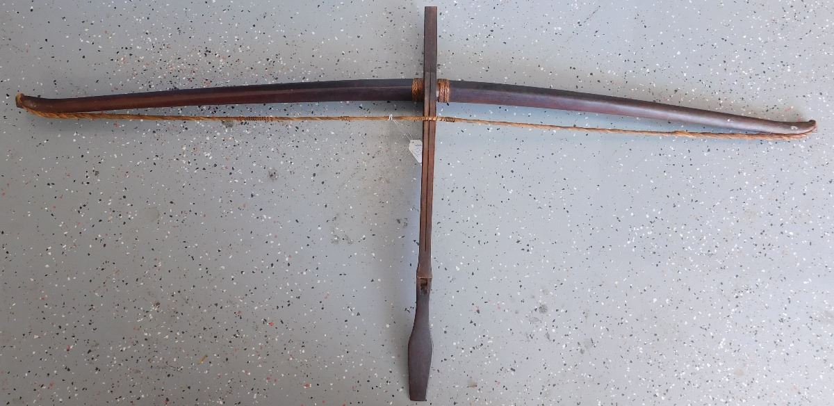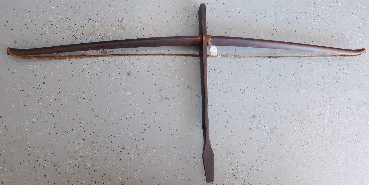 Viet Nam Crossbow, circa 1960s. Made of hardwood and vines, this item measures a robust 58" x 28". From North Viet Nam. Very large crossbow, used on large cats and wild boars. Condition: Good, no trigger, see images. Shipping: $120.00, USA estimate only, buyer pays all shipping fees.