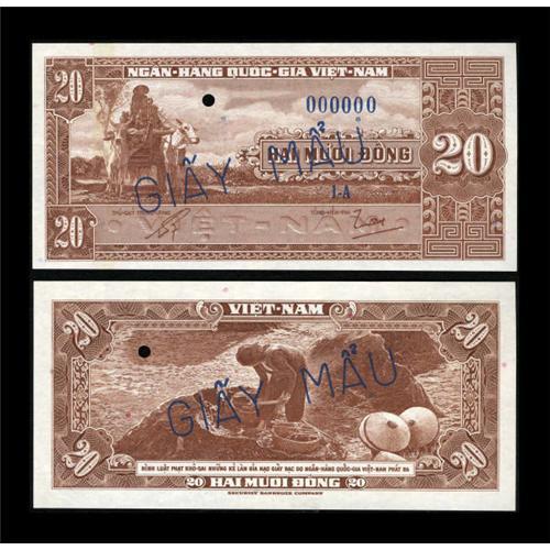 <B>Viet Nam-South </B></I>20 Dong (1962) Pick 6s Face and Back Specimens<BR> These face and back specimens have one small punch cancel each. <B>Gem Crisp Uncirculated.</B></I><BR><BR><b>Shipping:</b> Coins & Currency (<a target="_blank" href="http://www.heritageauctions.com/common/shipping.php">view shipping information</a>)