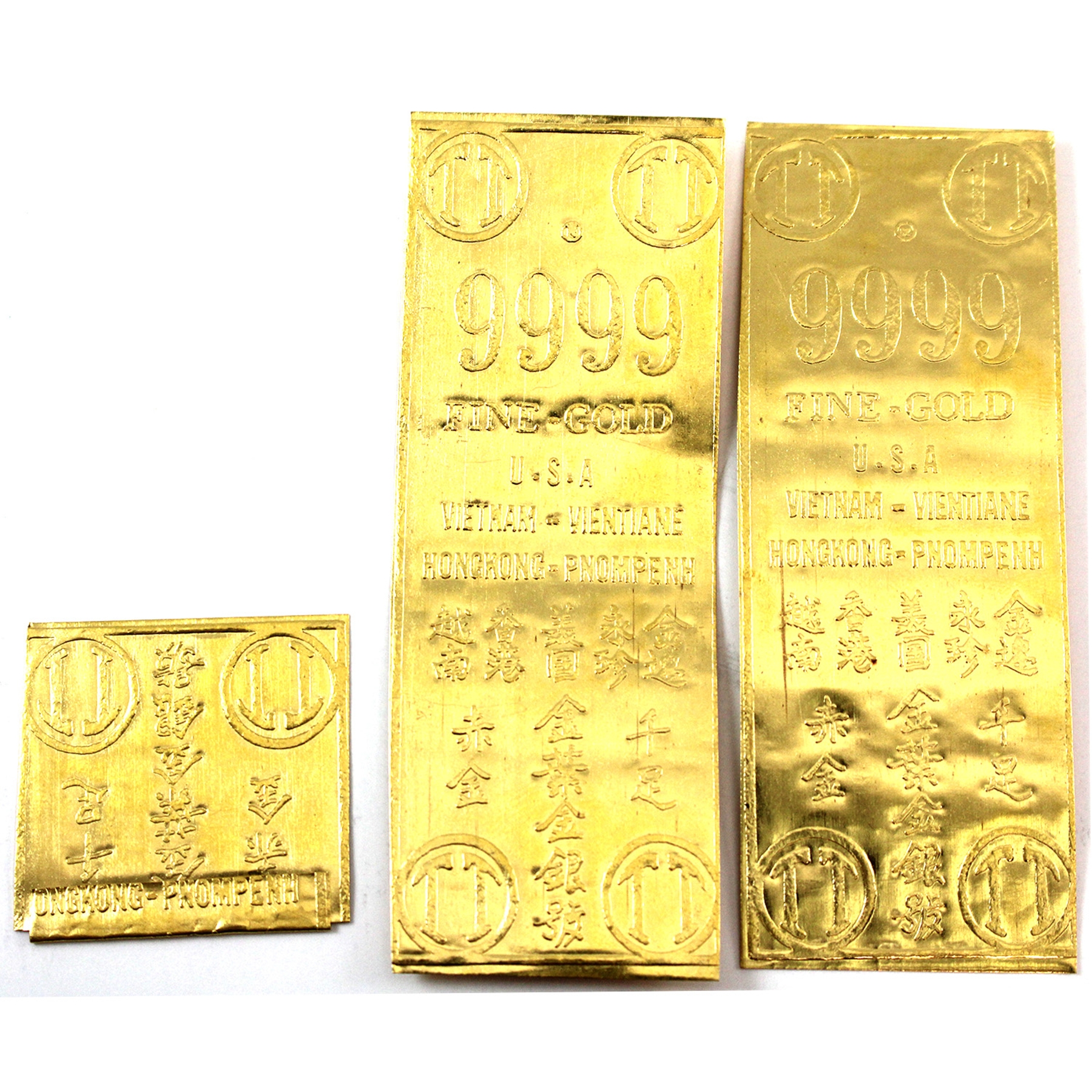These bars were famous throughout Southeast Asia before and during the Vietnam War and were held by refugees fleeing Vietnam and Cambodia. Referred to as "boat people", the refugees escaped by boat to the South China sea hoping the US Navy would rescue them. Most times these bars were their whole life savings, helping them to continue their lives elsewhere. Includes 3 pieces weighing 15.01g, 15.41g & 7.08g (Tax Exempt)