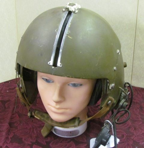 Vietnam Era Helicopter Pilot Helmet with Goggles and Radio attachment