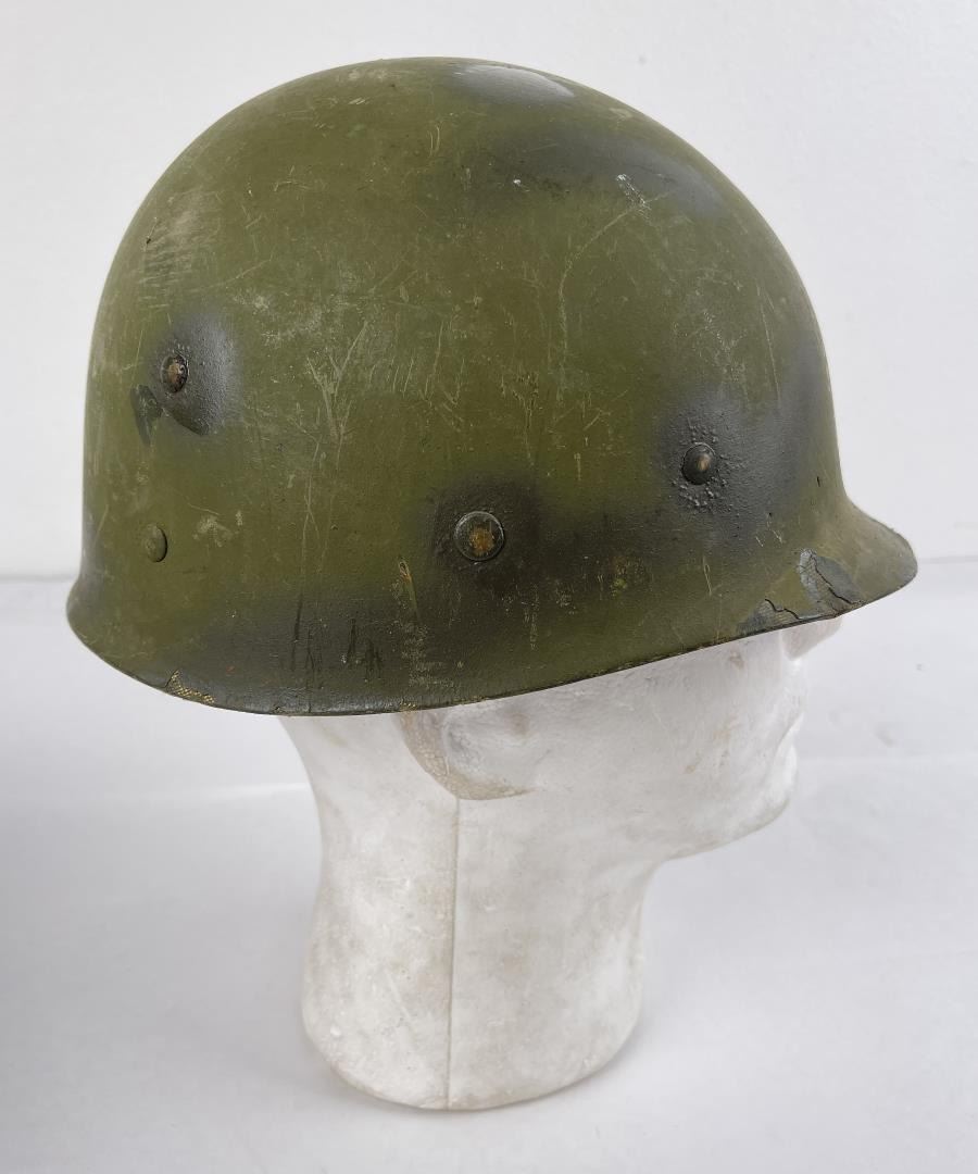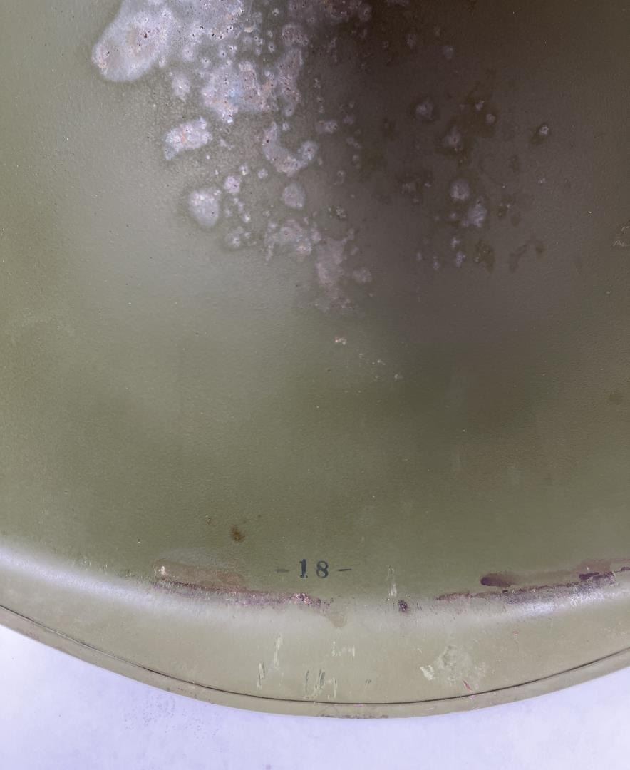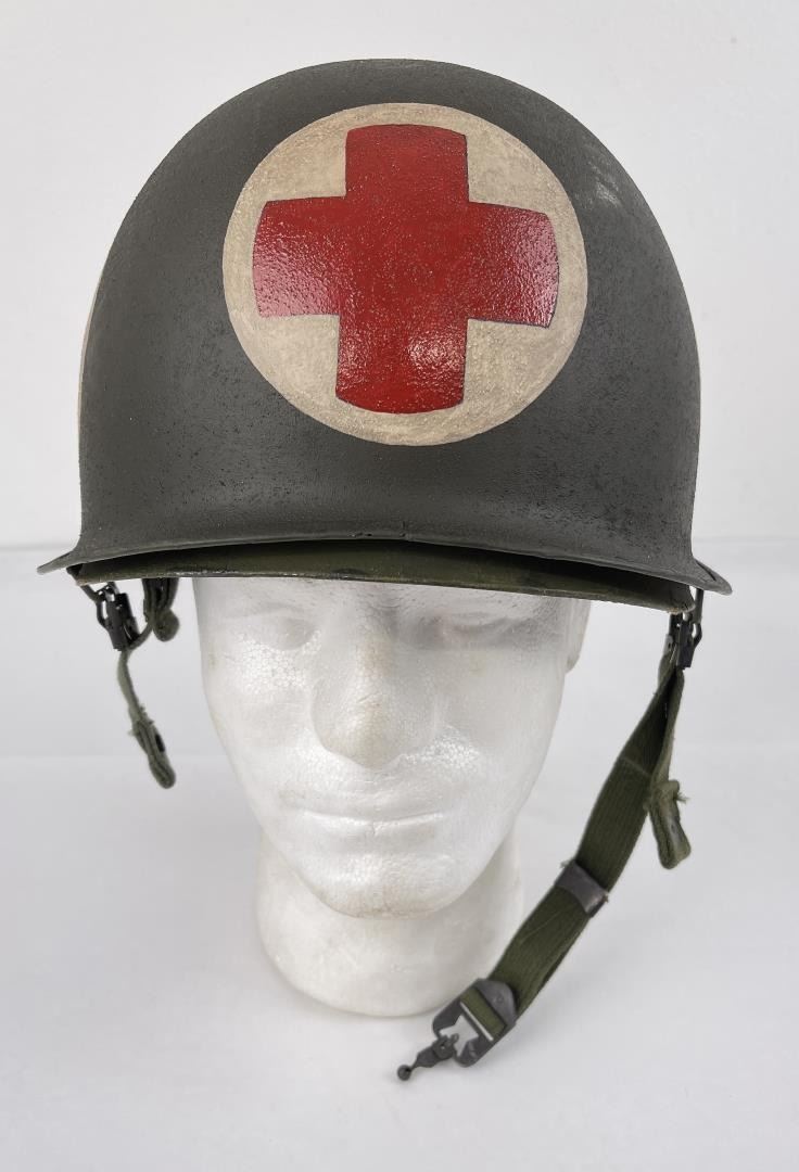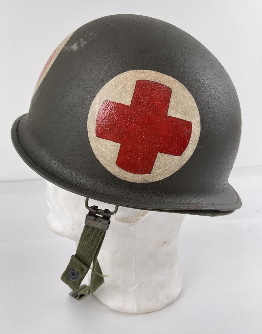 Nice helmet. Has been painted at a later date with the hospital cross.