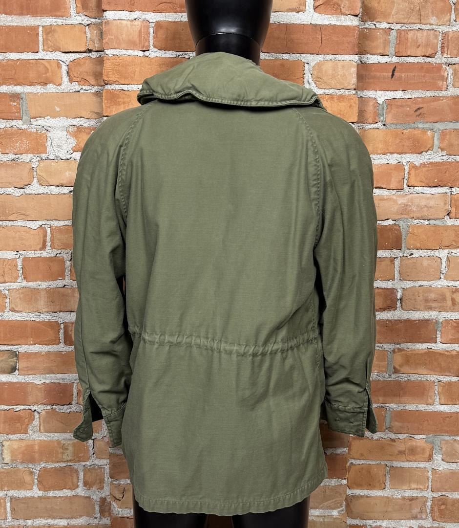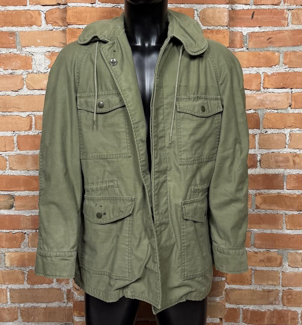 Missing buttons. Has been relined at some point. 24" armpit to armpit, 22" shoulder to shoulder, 30" long. From the estate of Special Forces Sargent Rand Garland Jones of Stevensville Montana.