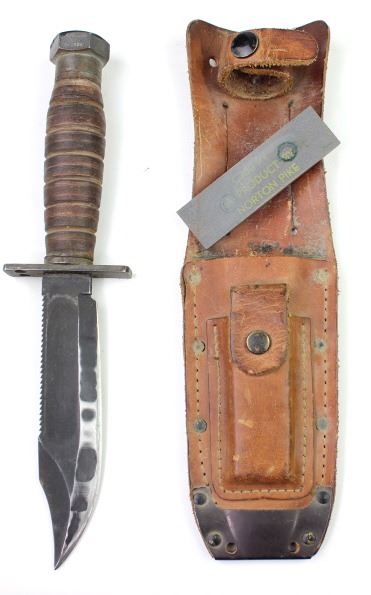 Vietnam era 1964 US pilot survival knife with scabbard and sharpening stone.with scabbard and sharpening stone.