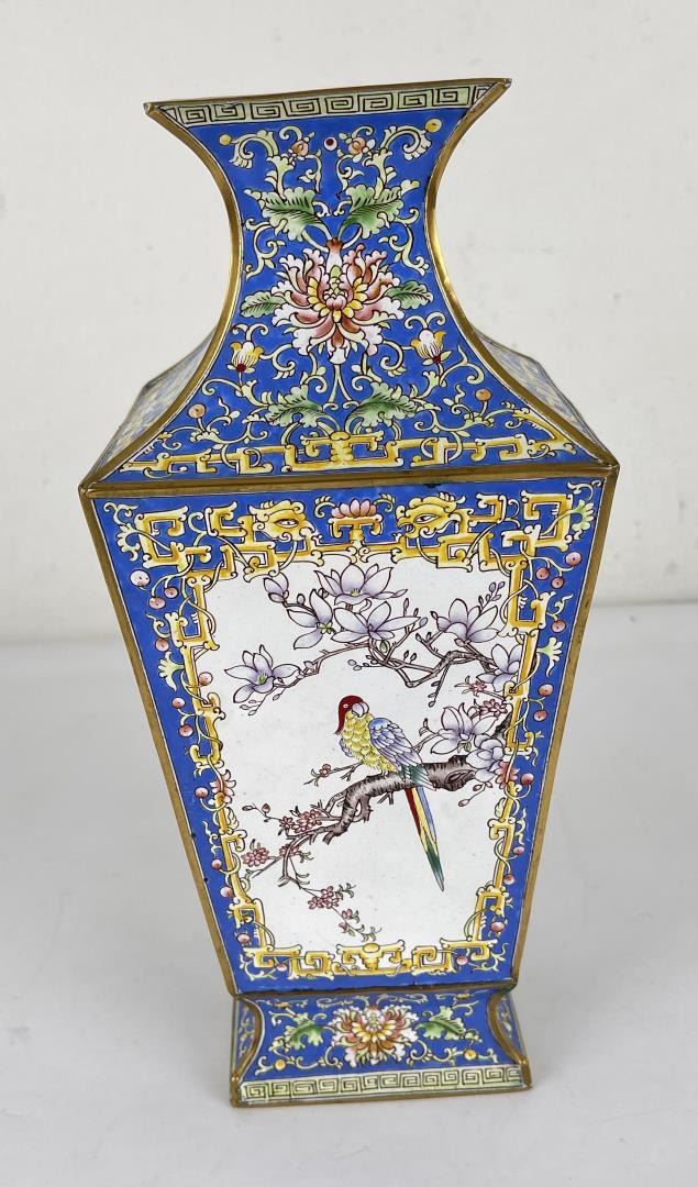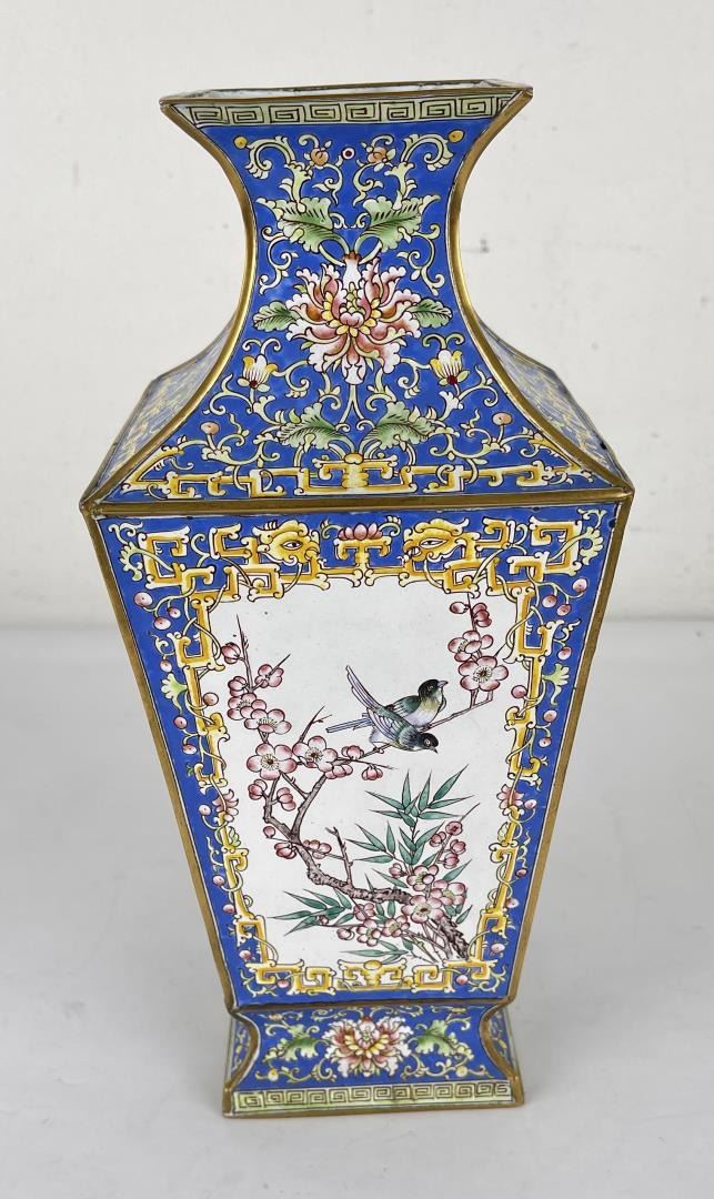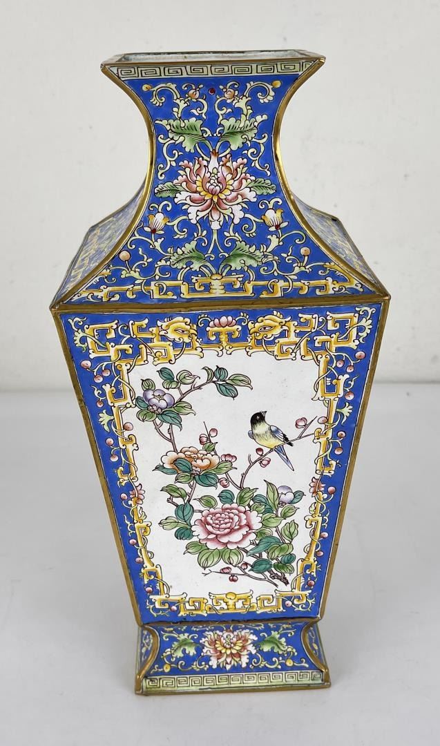 Very nice vase. Sadly it has been drilled for a lamp. 12.25" tall.
