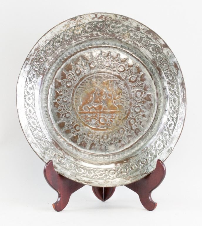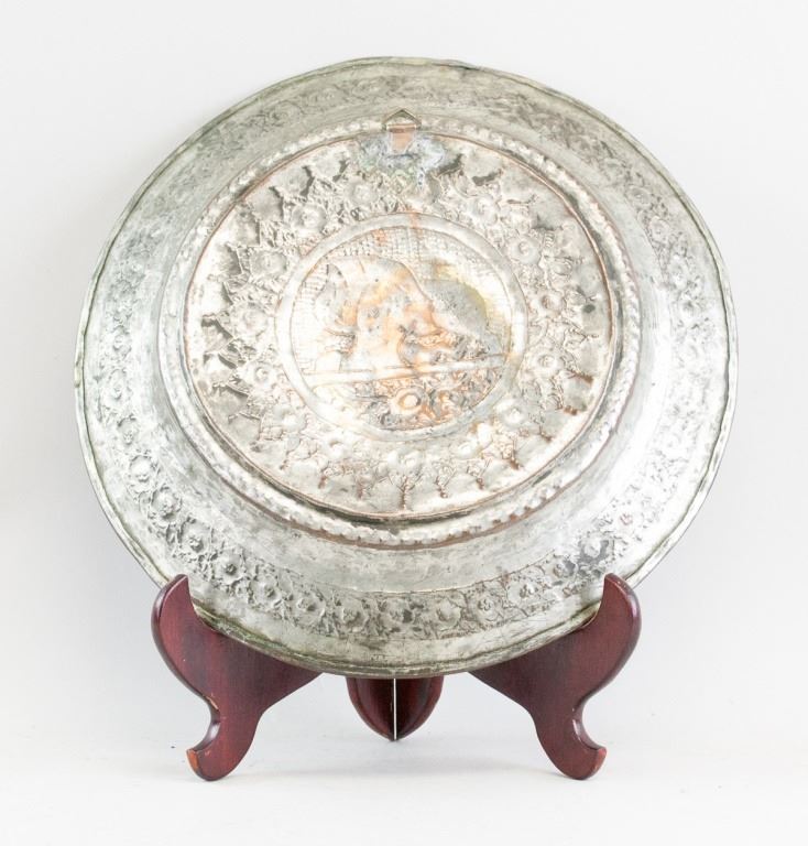 Vietnamese silver-colored copper plate. Hand beaten. From 18th century. 5 x 30 cm. 593 grams.