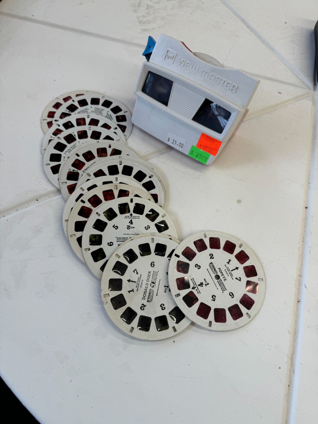 View master with reels, Popeye, Donald Duck, Dennis the Menace, and other
