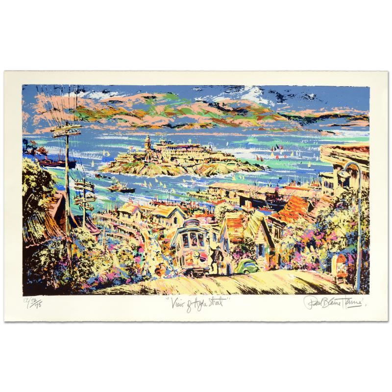 "View of Hyde St." is a limited edition serigraph on deckle-edge paper, EE numbered and hand signed by Paul Blaine Henrie (1932-1999)! Includes Certificate of Authenticity! Measures approx. 40" x 26" (border), 36" x 22" (image).