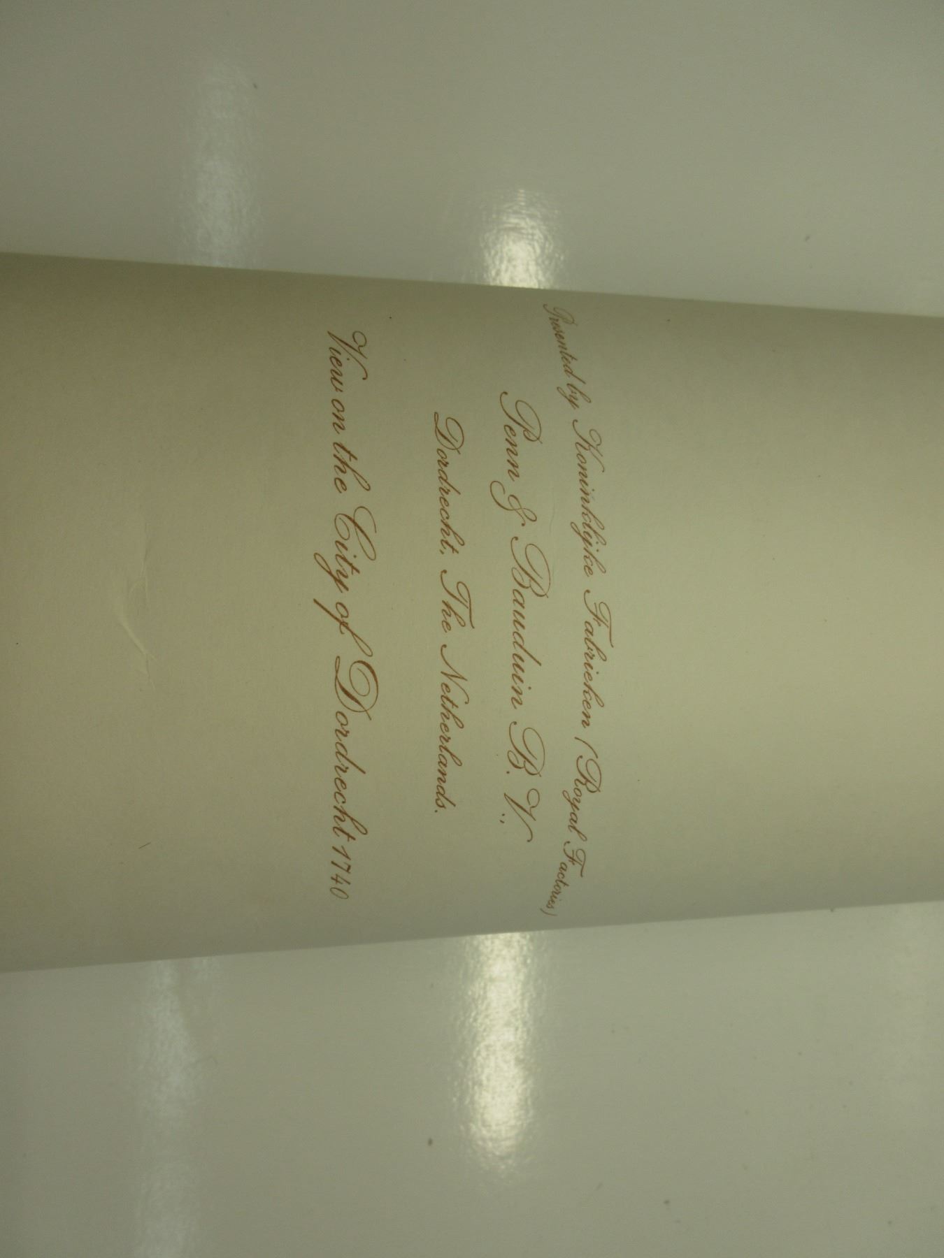 View on the City of Dordrecht 1740 and orignal tube it was mailed to Husky Oil Co. - not sure of age as we could not find any information on the picture but was mailed 18-3-77 on the tube