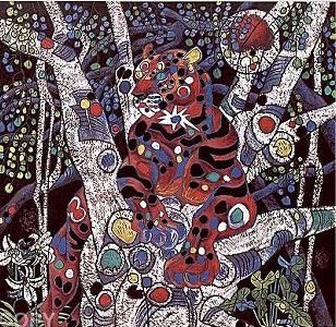 Jiang was born in 1938, in Ningbo, Zhejiiang Province, in China. Even as a child he displayed a great love and talent for painting and drawing, and early on he knew the course his life would take.In 1959, in a highly competitive exam he won admission to the prestigious Central Academy of Fine Arts in Beijing. From 1962-64 he studied with the famous Chinese artist Huang Yong-yu, who first exposed him to the paintings from the Dunguang caves. In 1964 he earned his Bachelor of Arts degree. This was the last class to graduate before the cultural revolution. Jiang also learned about traditional Chinese art, an influence which would remain with him. Upon graduation in 1964 Jiang and a small number of other artists volunteered to go down to the Yunnan province. This turned out to be a blessing. This beautiful province is on the Vietnamese border. It is lush and tropical, filled with exotic flora and fauna,and is home to more than 20 different minority peoples. His new home allowed his talents to burst forth. Jiang's talent was so obvious that from 1966-73 the Chinese Government assigned him to produce "Socialist Realism" propaganda posters and sculptures during the Cultural Revolution. He even painted the famous large red-faced poster of Chairman Mao. But this sterile exercise did nothing to release the emotional side of Jiang's nature, and at night he worked in his small room, on his bed, to create his own style. The natural beauty of the Yunnan province inspired him. With two other artists, He Neng and Liu Shaohui, Jiang secretly formed the nucleus of what was first called the "Heavy Colorist" school and is now known as the "Yunnan School," began. The Progress of Jiang's CareerJiang's work quickly gained prominence and even the repressive authorities had to concede his talent. He became one of the most well-known illustrators of children's books in China. In 1974 he illustrated "Two Little Peacocks." In 1976 he designed the animated cartoon of the same book. In 1978, Jiang began to teach as an Associate Professor at the Yunnan Art Academy, where he would continue until 1983. In 1979, the Chinese Government commissioned him to paint a mural representing Yunnan Province for the Great Hall of the People in Beijing. The project took seven months and used six full panels of silk. This was the "Stone Forest" mural, one of Jiang's finest works. Jiang himself says: "This mural was the first time I had ever let my own true style show publicly. The color, energy, and fantasy of my painting was not appreciated by the government during Mao's Cultural Revolution. While I was painting "Stone Forest" an official came by and said I shouldn't do it that way. I said "Okay" as if I would change it. But I didn't change a thing. Later he came back and said "Oh, that's much better." He didn't know what he was talking about. He was just comforted to think that he, a government official, had control over this strange, dangerous art."For Jiang, success followed success. In 1979 he illustrated "The Secret of Jinchun Tree," which won the first prize as the best illustrated book out of Jiangsu Province. His painting "The Legend of the Water Sprinkling Festival of the Dai" was featured in the documentary film "Yunnan Scene." In 1980 the illustrated books "Little Red Riding Hood"; "The Ugly Duckling"; and "A Shi Ma" were published. For "A Shi Ma" Jiang was awarded Second Place in an international United Nations competition of illustrated books. In 1981, Jiang's work was featured in the "10 Artists From Yunnan" show in Beijing, and then, in 1982, was prominently featured at a show in Hong Kong, which also featured the Yunnan artists as well as some of their followers.But as early as 1981 the Chinese Government had returned to its repressive policies. Government officials publicly stated that they feared China was losing its "socialist morality" and becoming "morally polluted." Art officials favored a return to Socialist Realism painting and they expressed their displeasure by refusing to select paintings by Jiang, Liu Shaohai, or He Neng for the permanent collection of the National Art Gallery. Jiang was the prime target of their wrath--his paintings were excluded from television coverage and a seminar was even officially organized to criticize his work. His work was criticized as "...too daring and audacious...a nightmare." Jiang did have defenders. Liu Shaohai said that he would be glad to have nightmares every night if he could paint like that. The President of the Central Academy of Art and Design, Zhang Ding, wrote an article praising Jiang's work but withdrew it on the eve of its publication at his wife's urging, who remembered how Zhang Ding had been beaten and publicly humiliated during the Cultural Revolution. Even so, Zhang Ding did on a number of occasions speak out and express his admiration for Jiang and some of the other young artists.All of this was making life increasingly difficult for Jiang. In 1982 a National Geographic reporter who was doing a story on China saw Jiang's paintings, and brought some back to the U.S. A friend of the reporter brought them to the Fingerhut Gallery in Minneapolis, where Jiang's work met with great success. In 1983, Jiang came to the United States as part of a cultural exchange program with the University of Southern California, where he became a visiting Professor of Art.Under the sponsorship of Allan Fingerhut, Jiang moved to Minnesota with his wife Zhaolin. For Jiang, success in America quickly followed. His rich, strong color, and exotic but intimate imagery struck an immediate response with the American public.Jiang's talent and uniqueness quickly brought his work to the attention of critics and museum curators nationwide, and this resulted in many public exhibitions. In 1984, Jiang had an exhibition at the University of Southern California Gallery; in 1985 at the New England Center of Contemporary Art in Connecticut; in 1986 at the Portland Museum in Virginia; in 1987 at