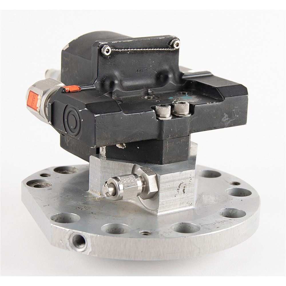 Rocketdyne RS-2101 Insertion Engine Valve/Injector Assembly designed for application on the Mars Viking Orbiter, measuring approximately 8.5è x 6.5è x 5è, marked on the edge: "Model No. 54-105, Ser No. 6." This propellant valve/injector assembly was designed to supply both fuel and oxidizer to the Viking orbiter flight version insertion motors.