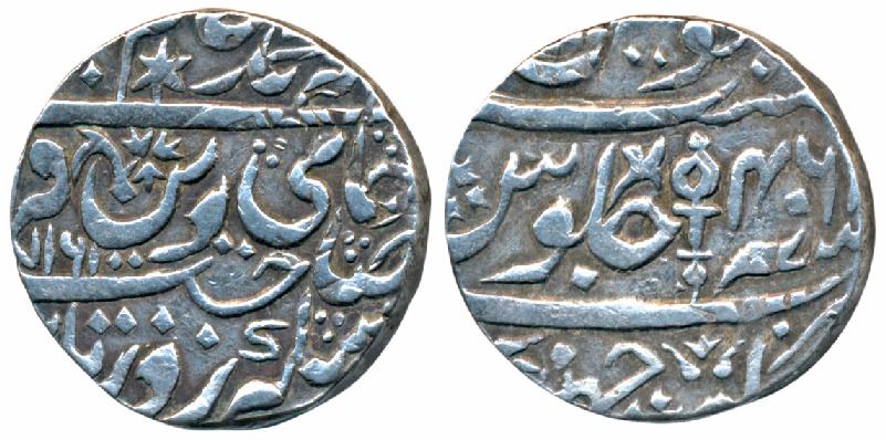 Vikramajit Mahendra, Silver Rupee, 11g, with the name of Shah Alam II, retrograde AH 1217/46, mace as mint mark on rev. (KM C32). Broad flan, 22mm, About Extremely Fine, Rare.