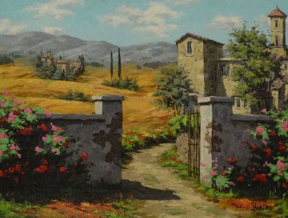 Viktor Shvaiko "Afternoon in Tuscany" Hand Signed and Numbered Limited Edition Embellished Giclee on Canvas Dimensions: 12 x 16 inches (Note: edition number received may differ from photo)