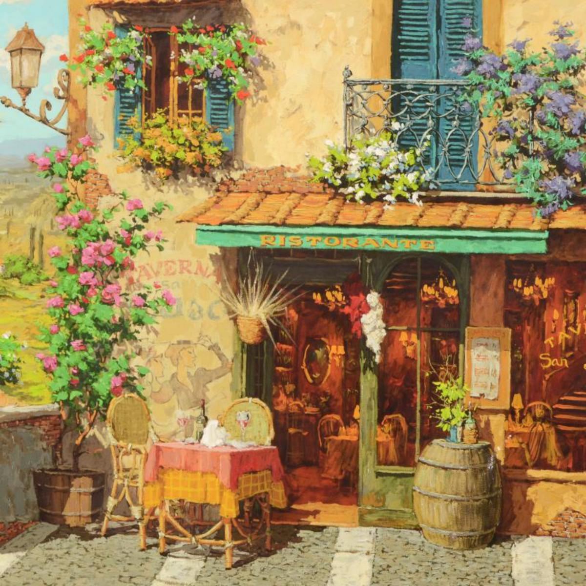 Viktor Shvaiko, "San Trovaro Taverna" Limited Edition Hand Embellished on Canvas, Numbered and Hand