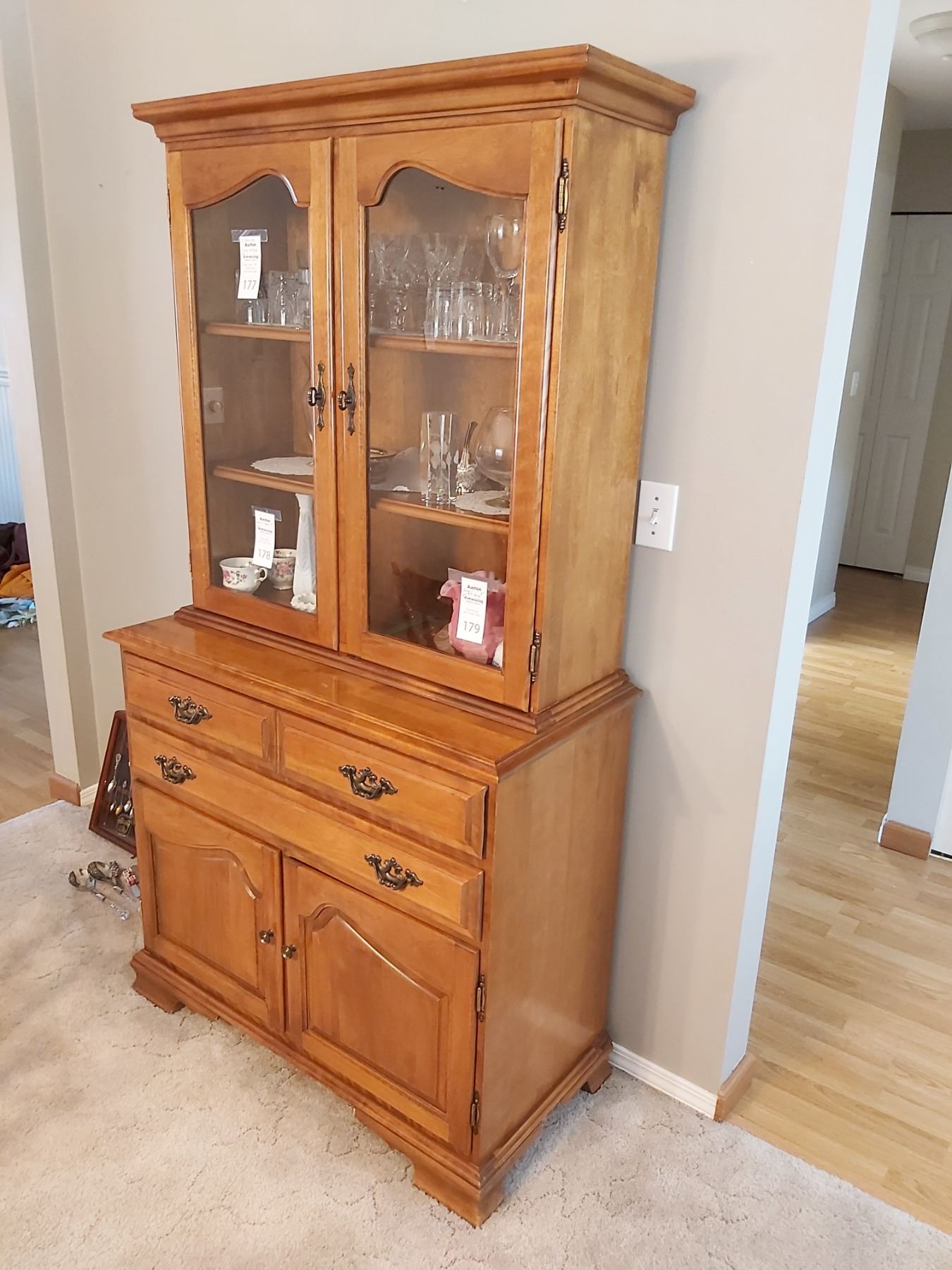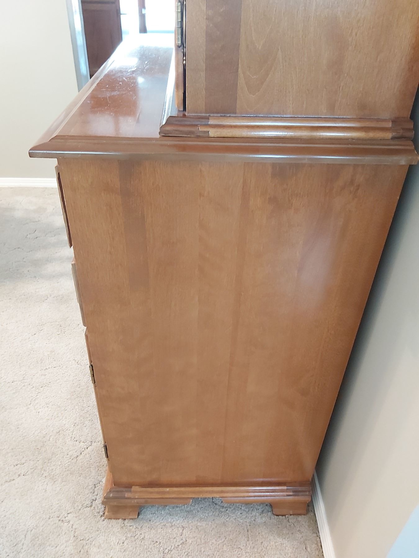 Vilas Maple Hutch 38x18x71 note chip below right cupboard door. Very heavy bring help to move.Contents not included Pickup 11am