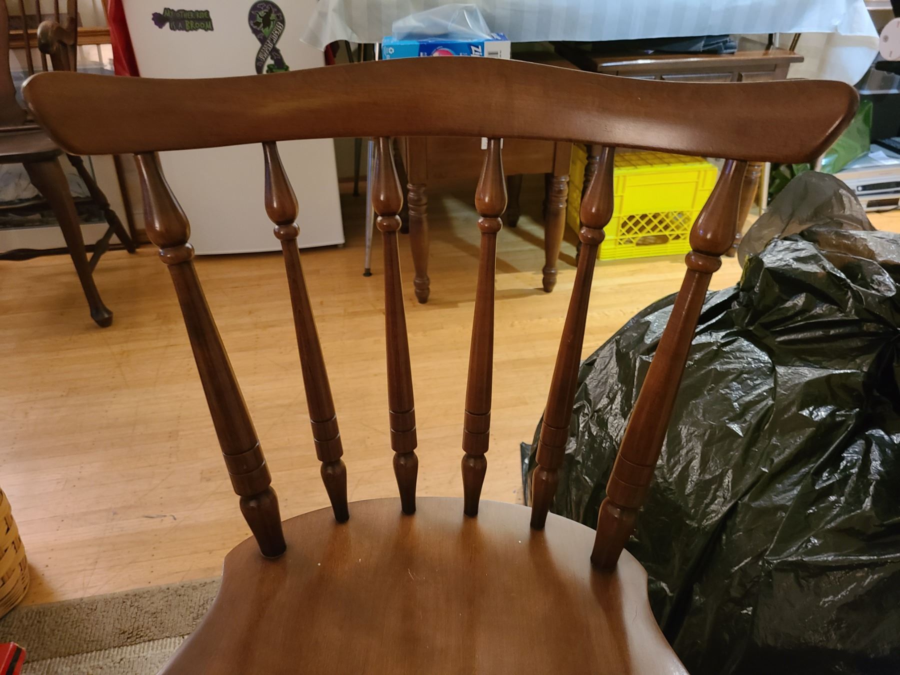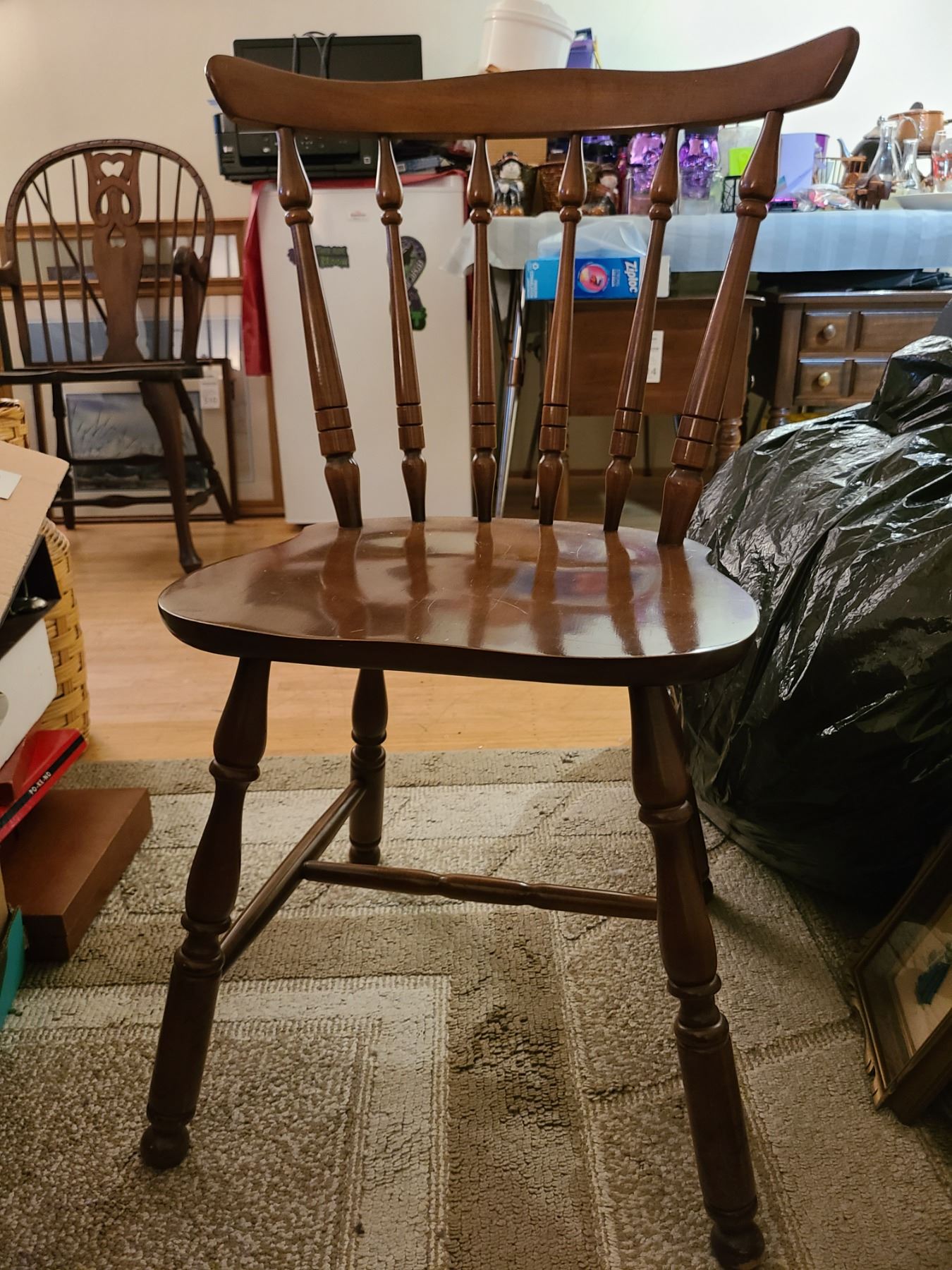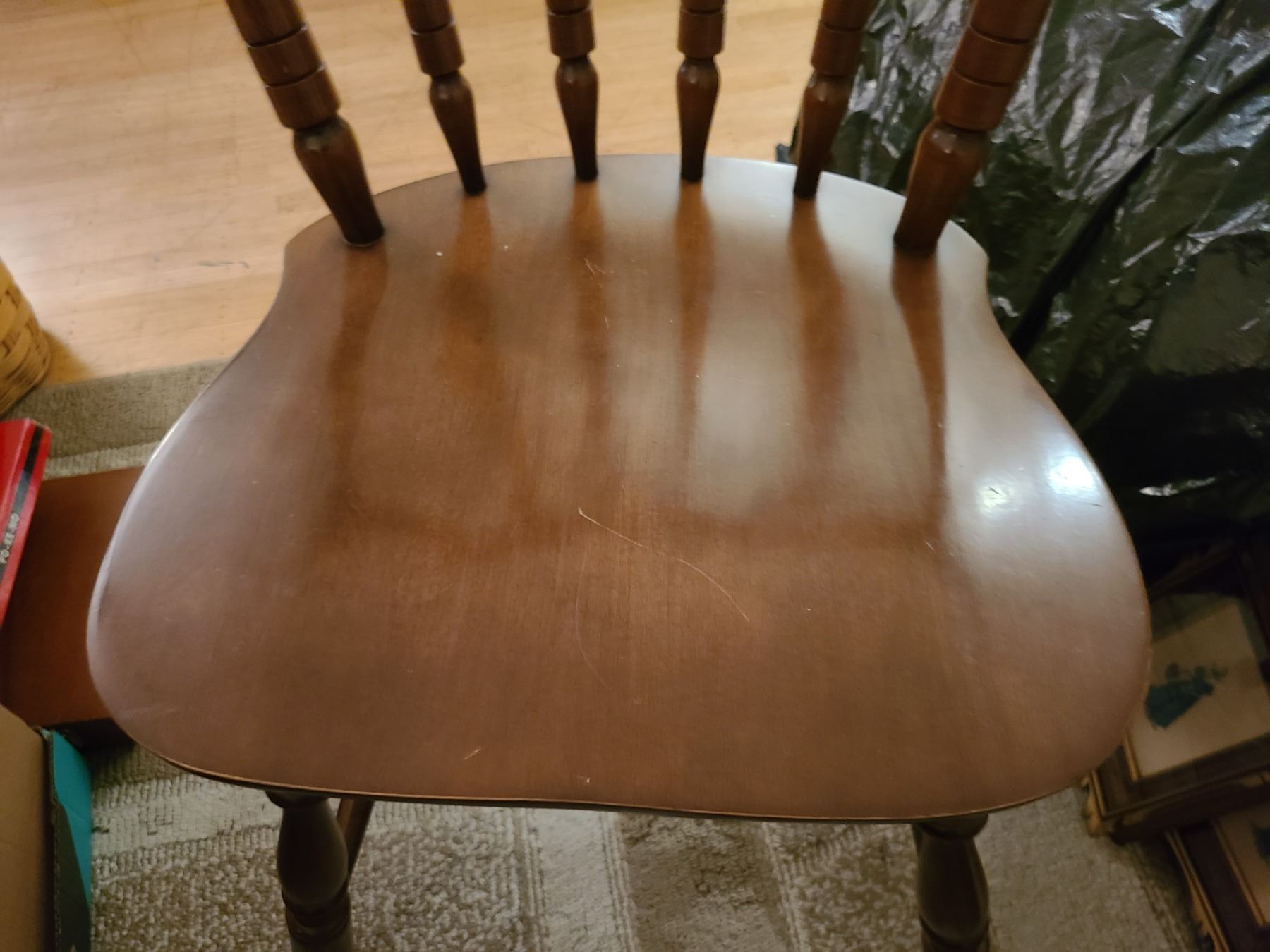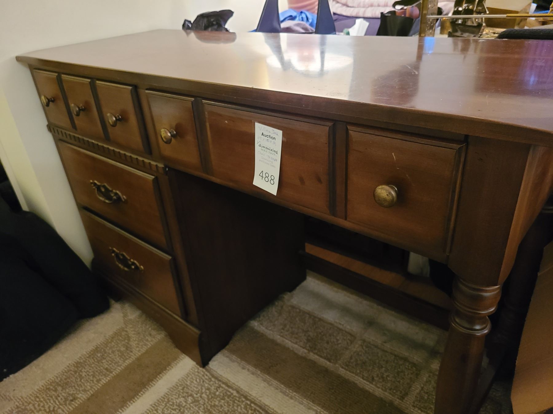 Vilas Maple desk, 48x18x31, with wooden chair 17x15x33. Please note scratches. Bring help to move. Pickup in cat. C at 11 am.