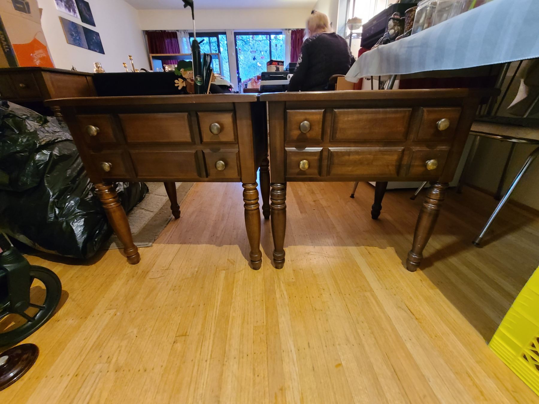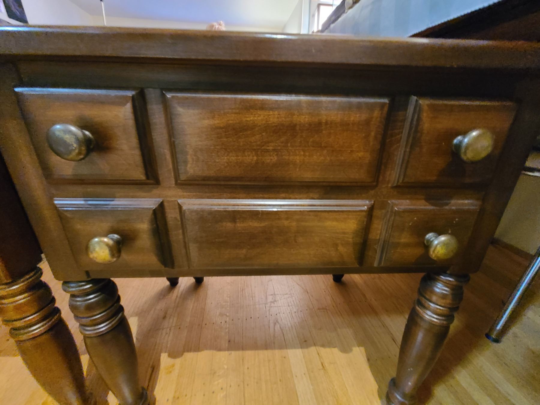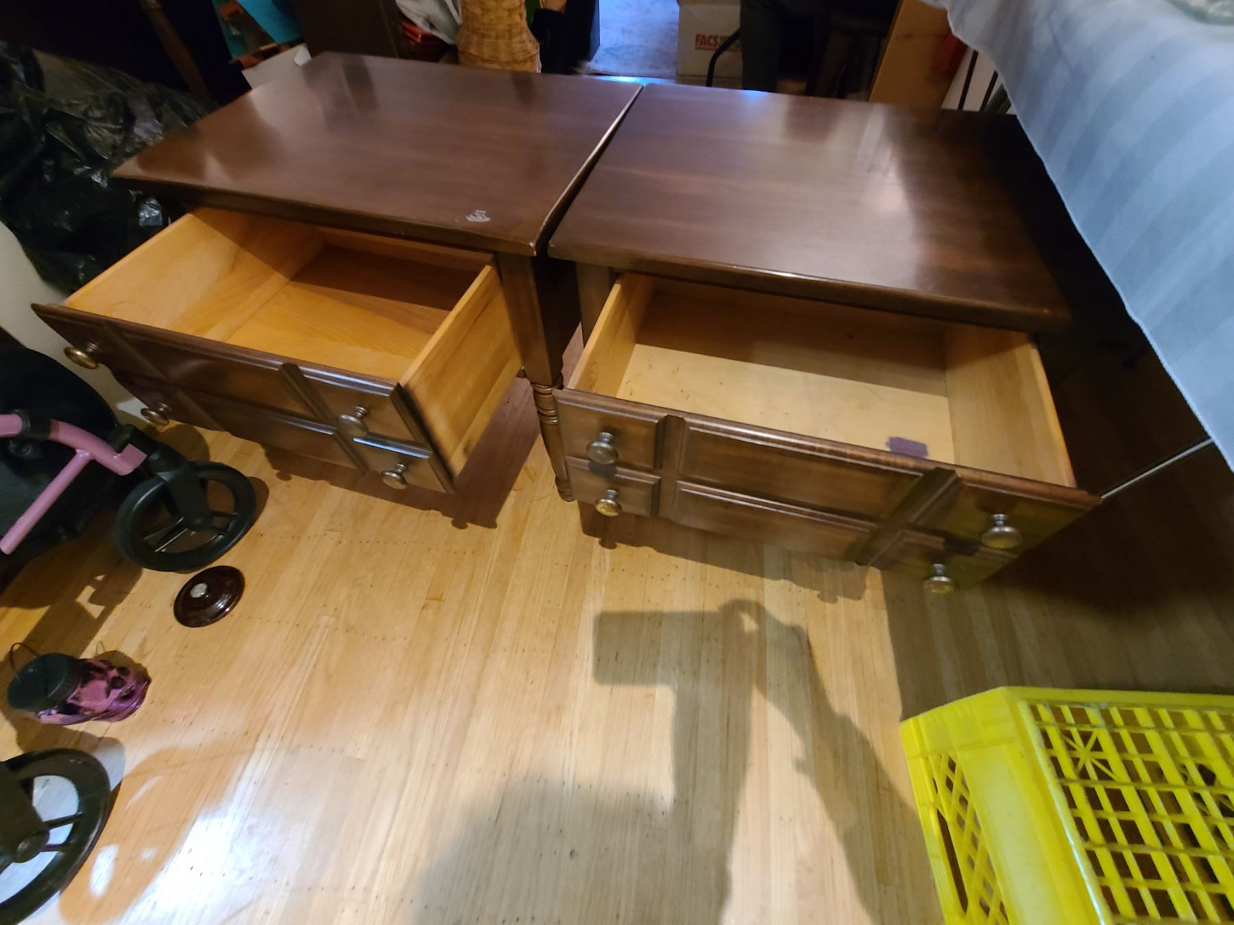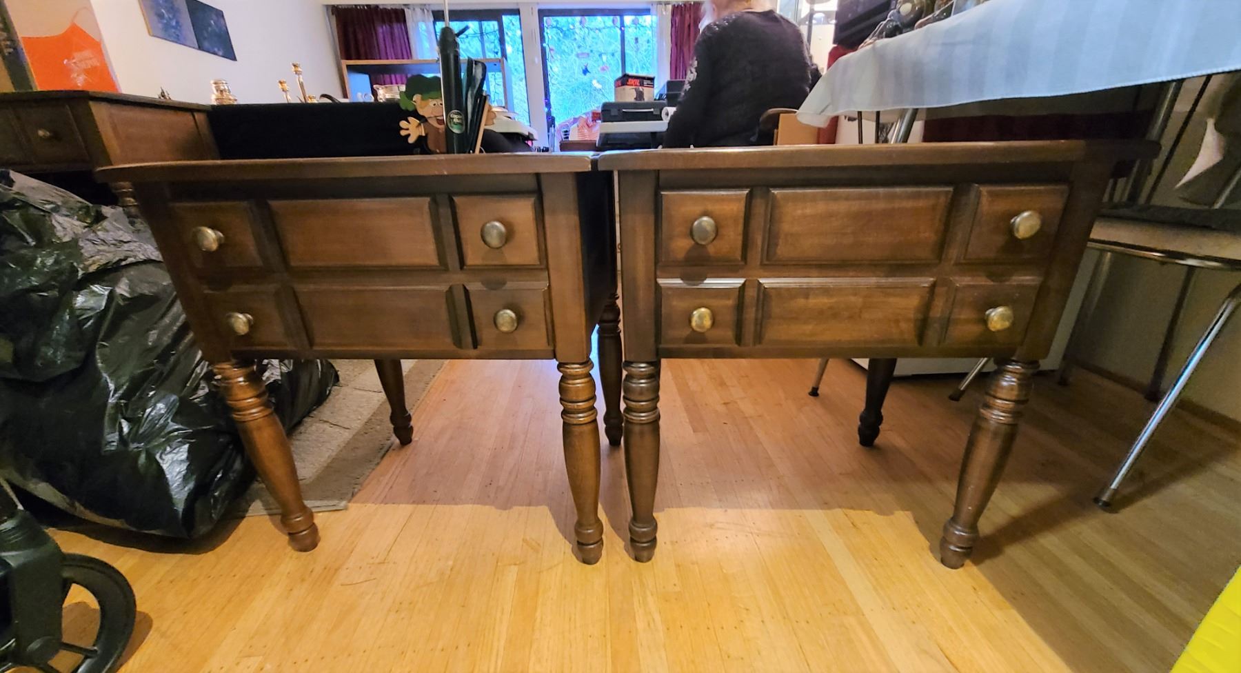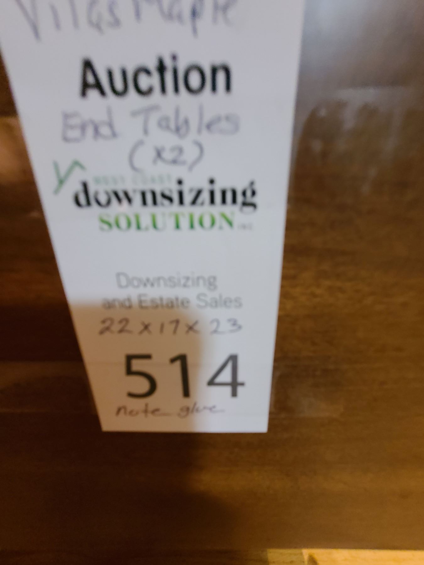 Two Vilas Maple end tables 22x17x23. Please note glue spot on one. Note scratches. Bring help to move. Pickup in cat. C at 11 am.
