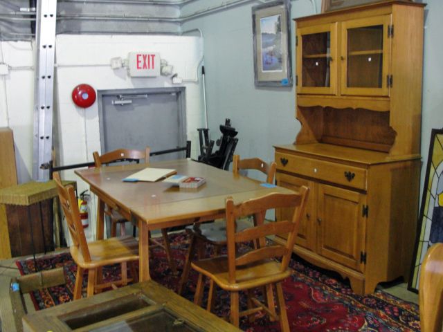 table with 4 chairs, buffet and hutch