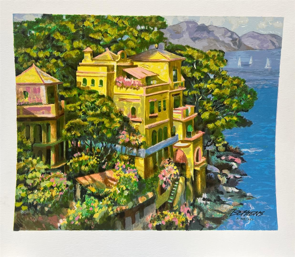 Villa Portofino by Behrens, Howard. Limited Hand Signed Serigraph on Paper. Dimensions: 16 x 20. Excellent Condition.