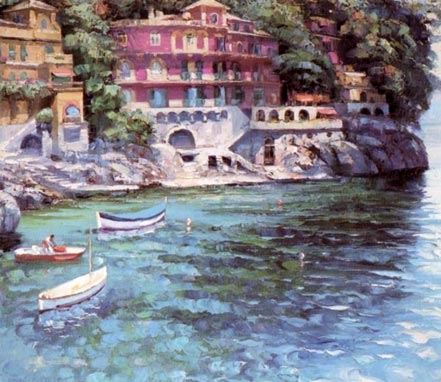 A charming European villa, this is a limited edition, signed and numbered serigraph on paper by Howard Behrens, with COA. 32 x 38