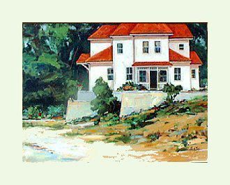 This beautiful oil of a villa is perfect for a quick escape to the beach any time. This large oil will be an elegant addition to any wall. Artist: Baker Title: Villa on the Beach<