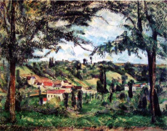 Village Framed By Trees Giclee on Canvas 17 1/2 x 22. Hand Embellished on Canvas