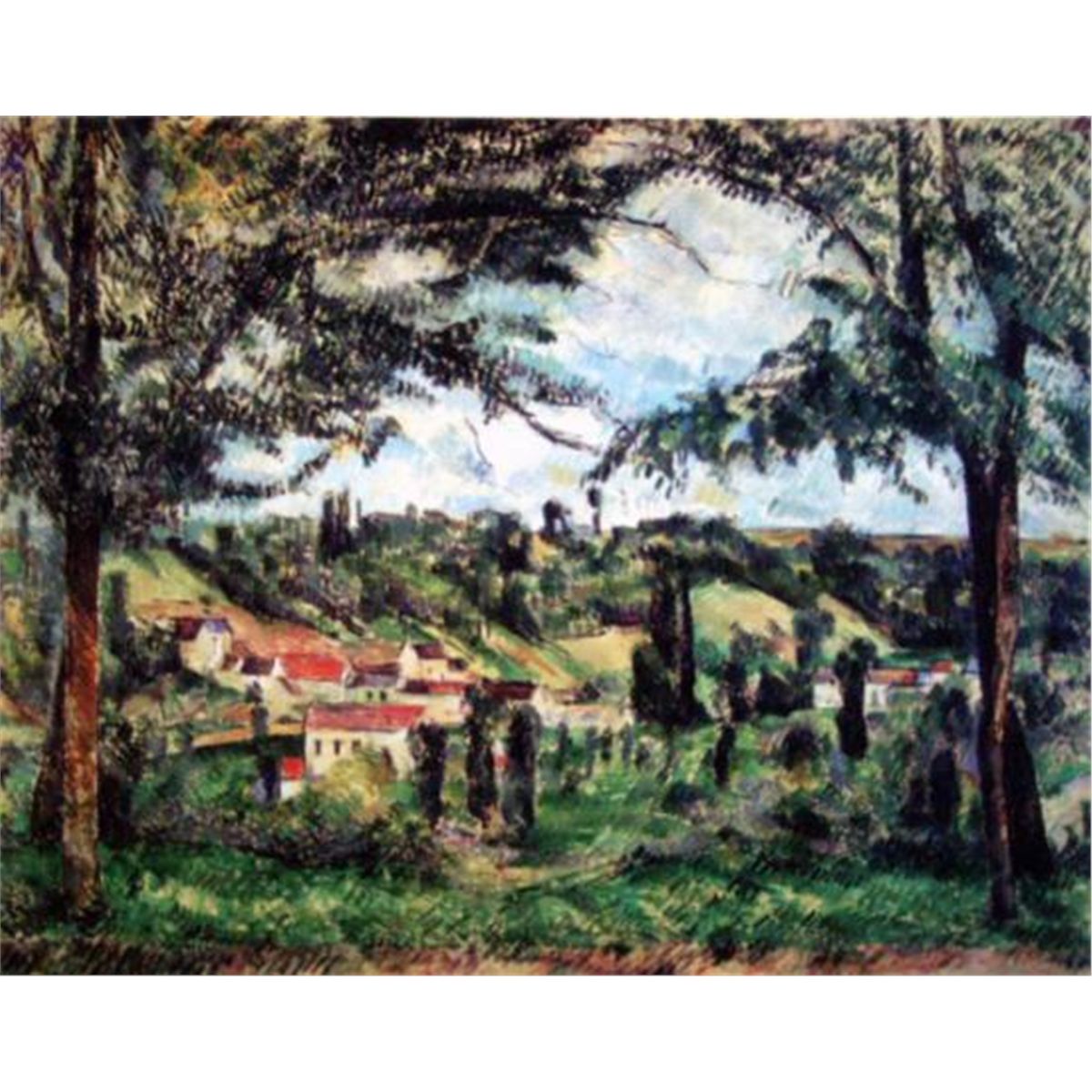 Village Framed By Trees Giclee on Canvas 17 1/2 x 22. Hand Embellished on Canvas