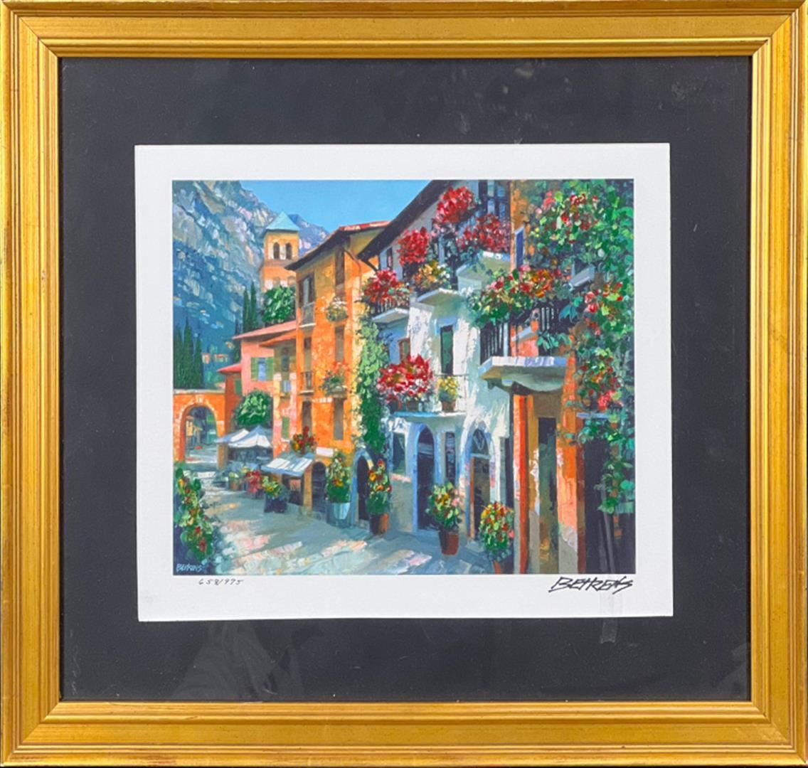 Village Hideaway - Custom Framed by Behrens, Howard. Limited Hand Signed Giclee on Paper. Dimensions: 8 x 10. Good Condition.