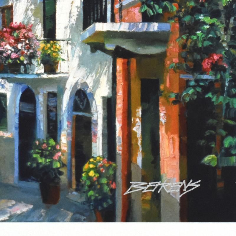 Village Hideaway by Behrens (1933-2014). "Village Hideaway" is a limited edition giclee on paper by Howard Behrens (1933-2014), numbered and bearing Behrens's authorized signature. Includes Letter of Authenticity. Measures approx. 12" x 10" (border), 10" x 8" (image).