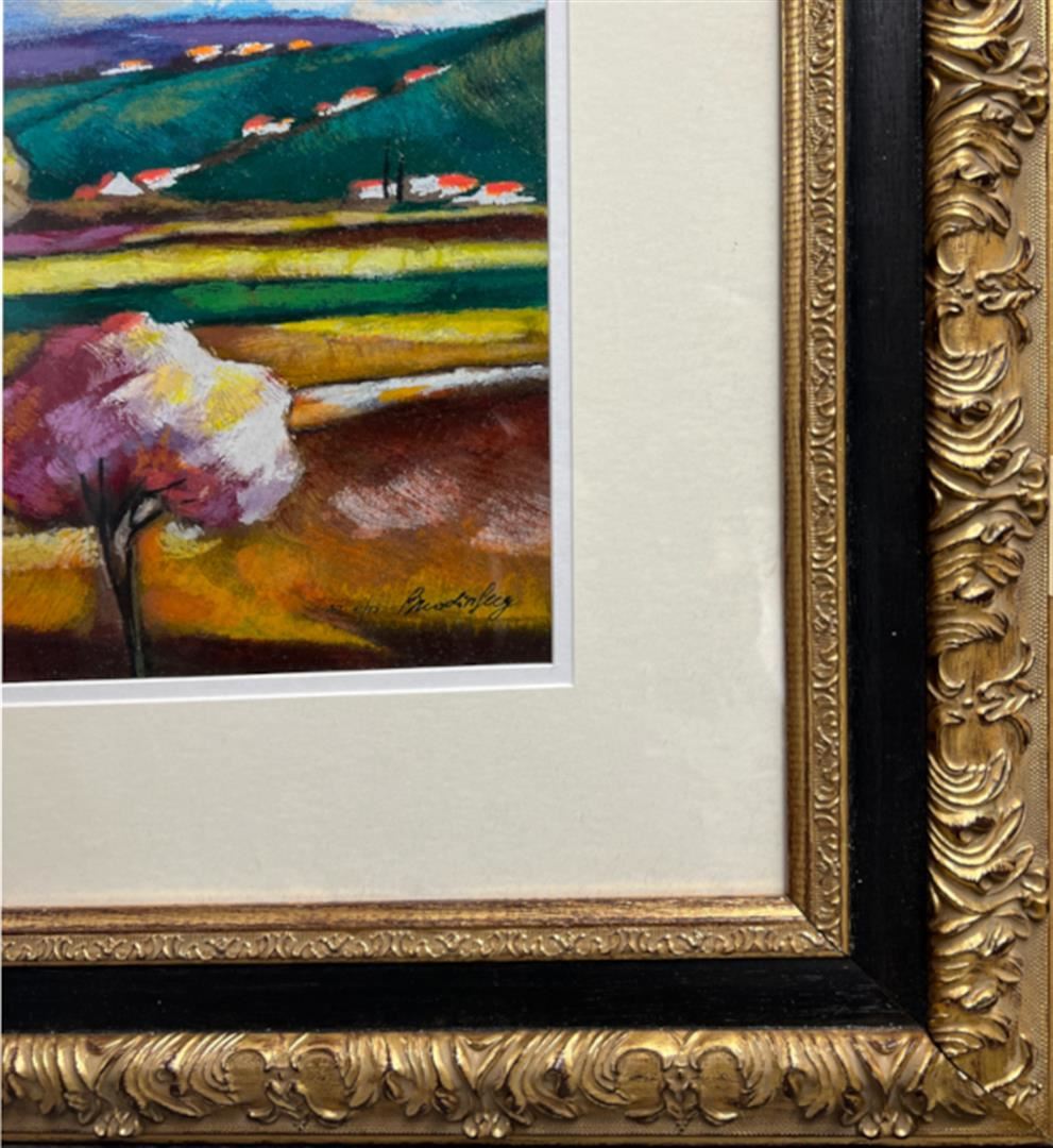Village in the Hills by Brodinsky, Slava. Limited Hand Signed Serigraph on Paper. Dimensions: 9.5 x 17.5. Excellent Condition.