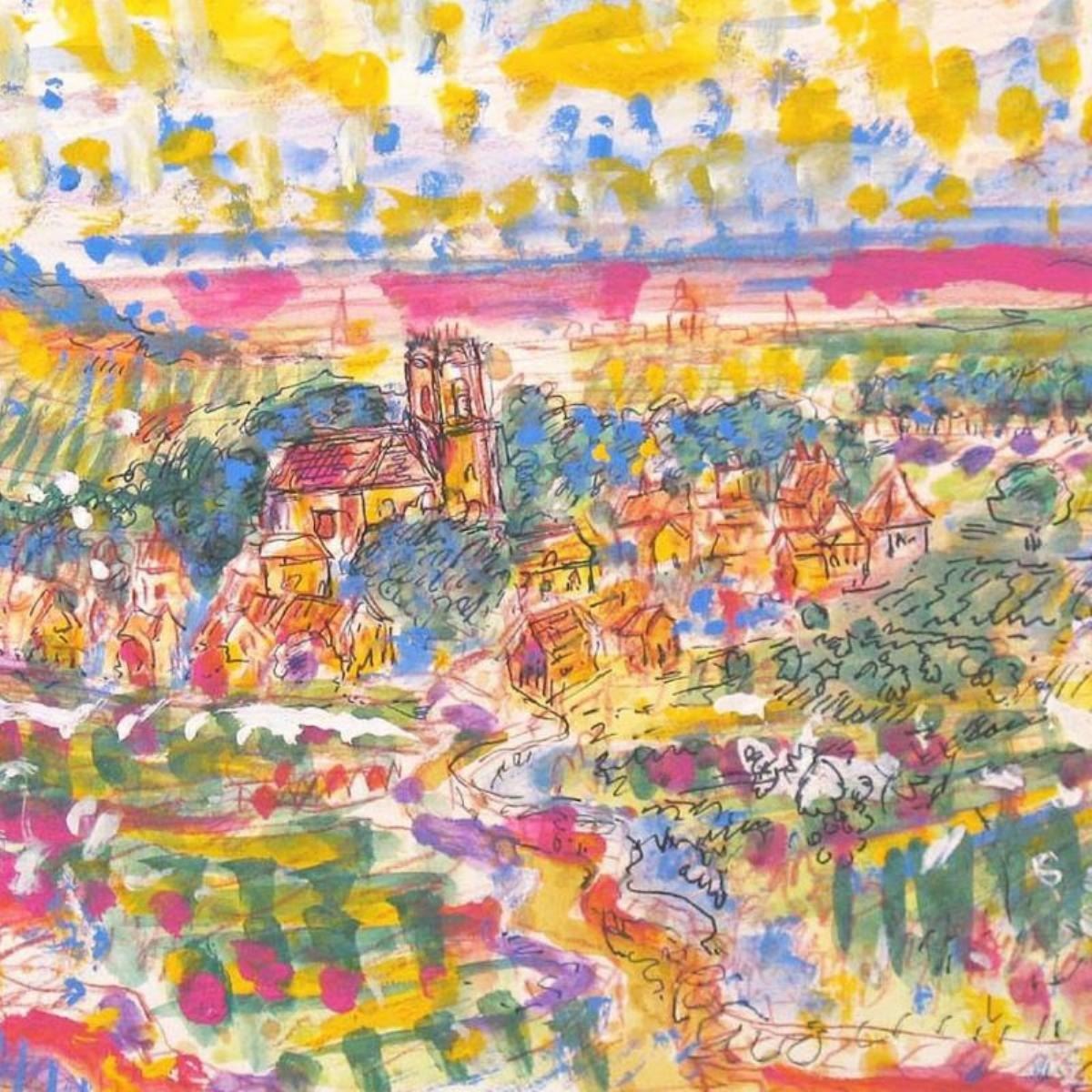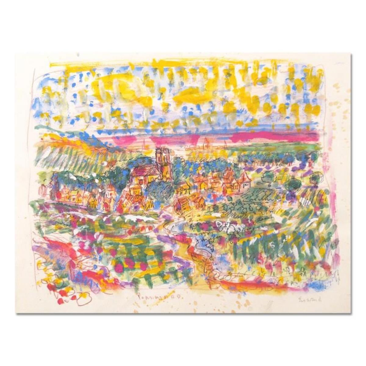 Village of Pommard, Burgundy by Ensrud Original. "Village of Pommard, Burgundy" is an original Mixed Media on Paper by Wayne Ensrud. The piece is hand signed by the artist and comes with a Certificate of Authenticity. Measures approximately 13" x 16".