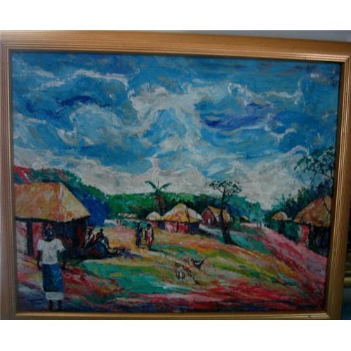 <tr><td>Title:Village scene with Kids in Africa signed</td></tr>