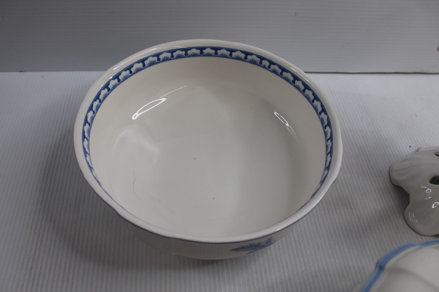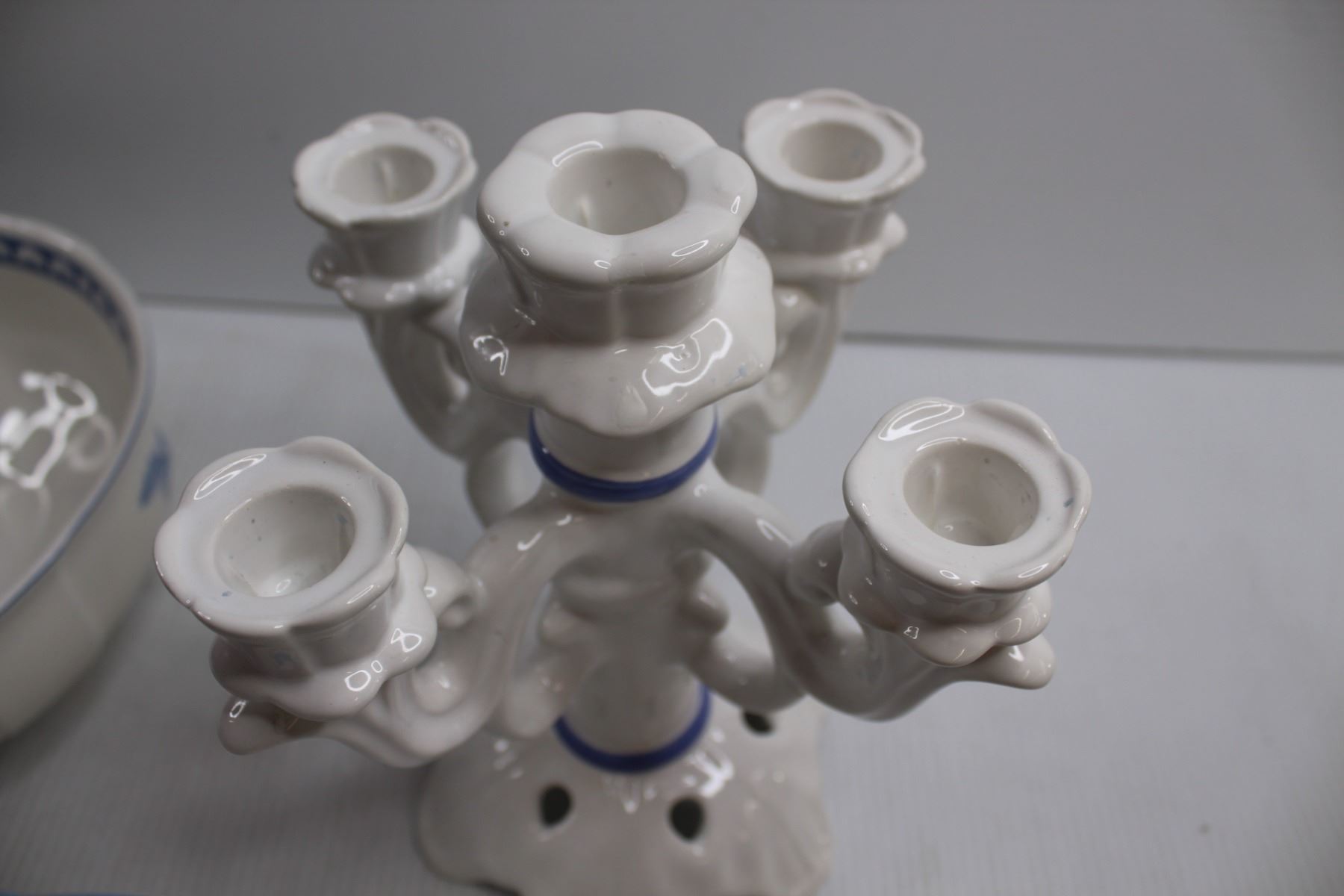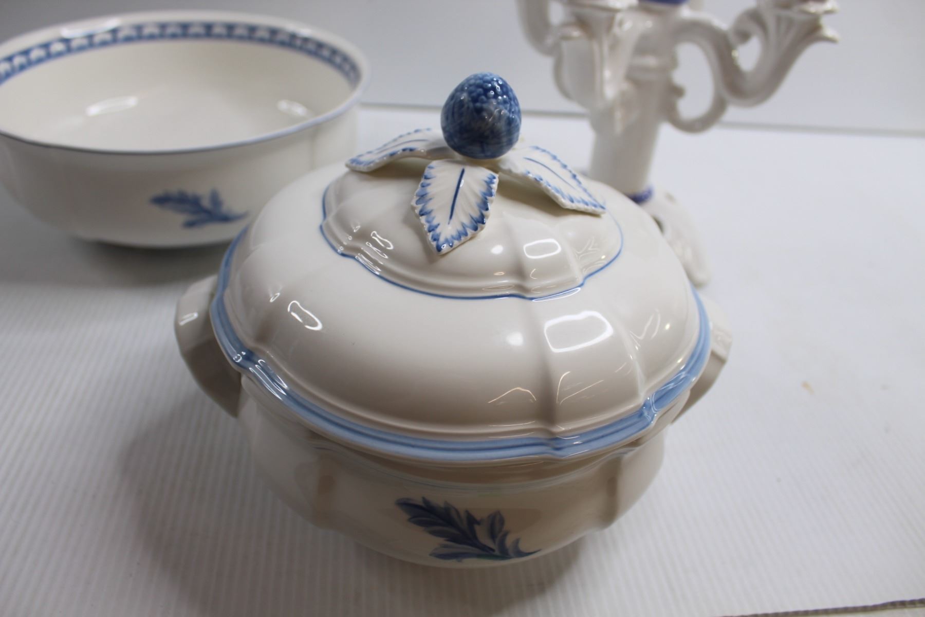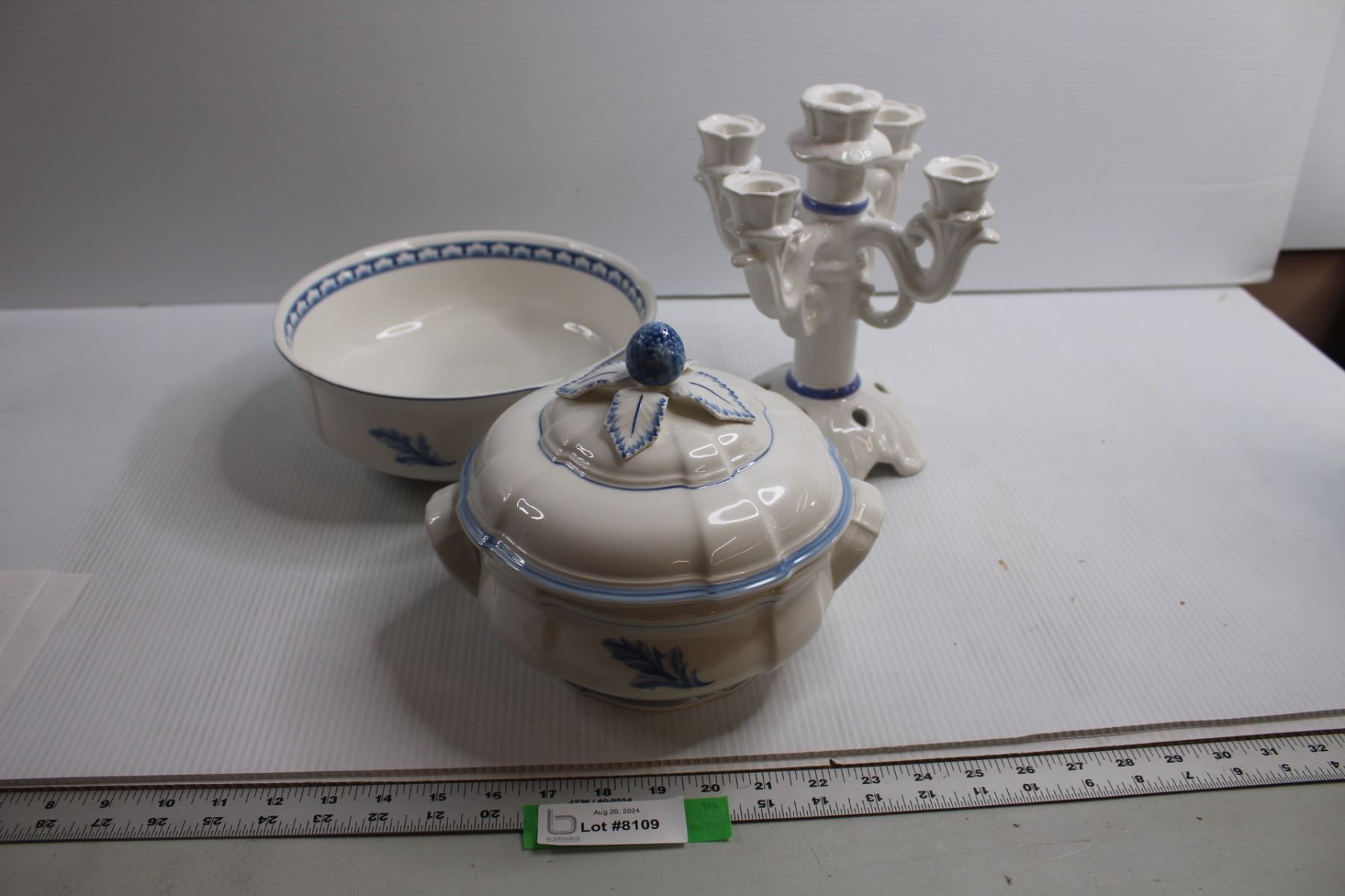 Villeroy & Boch Casa Azul Serving Dish, Covered Serving Dish (Small Chip on Inside Lid), and Candelabra