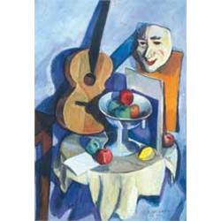 Vilmos Perlrott Csaba (1880-1955) - Still life with guitar and mask, 1930