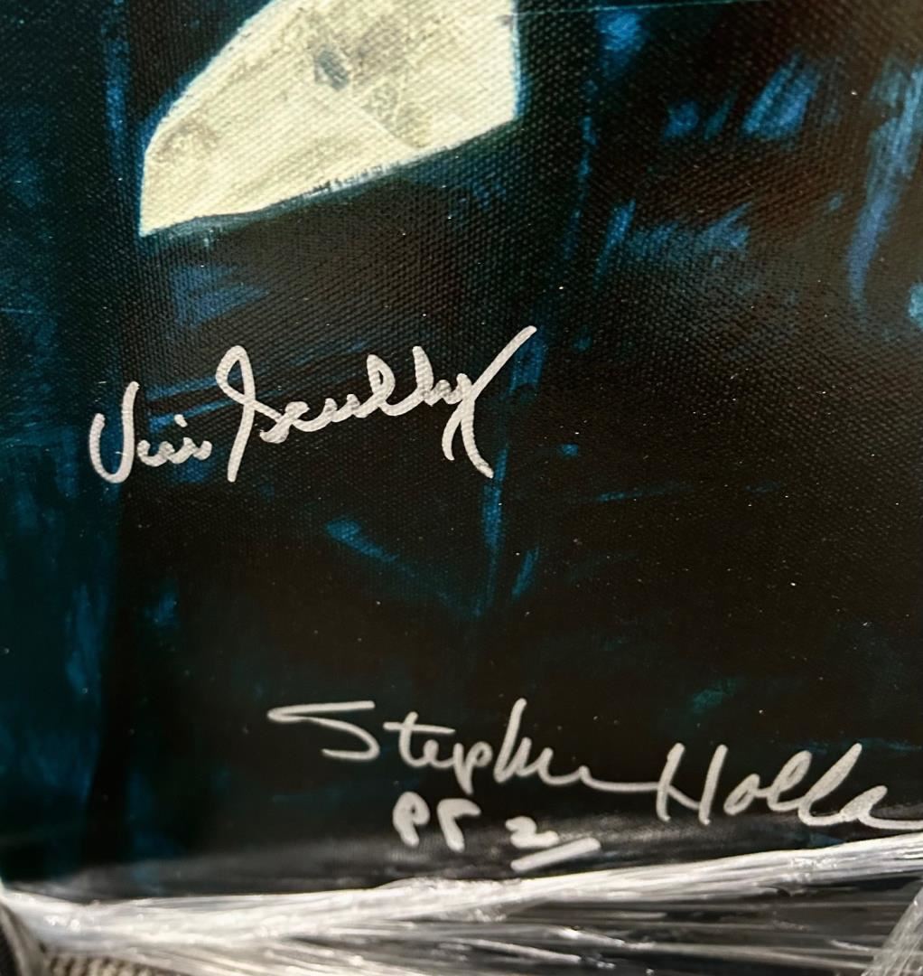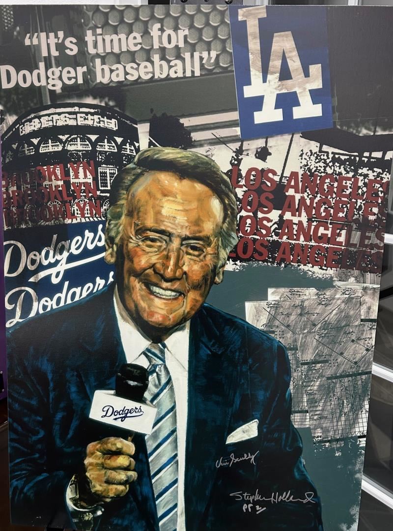 Stephen Holland's wonderful portrait Vin Scully, signed by Scully & artist 41" x 28.5" Giclee PP2, on canvas and boxed stretcher w/ COA
