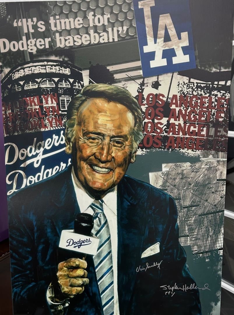 Stephen Holland's wonderful portrait of Vin Scully, signed by Scully & artist 41" x 28.5" Giclee PP1 on canvas and boxed stretchers, w/ COA