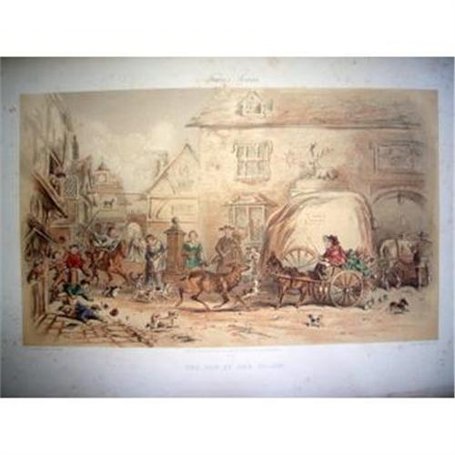 Purchased from an estate auction, this charming and colorful hunting print is plate 10 in a series of 12 prints, published on May 19th, 1863 in London, England by Messrs. Fores, 41 Piccadilly. The series is an ironic look at the very British tradition of 'going to the hounds' and/or hunting on horseback. In the series, we first see the riders searching for lost stirrups and other pieces of equipment, getting lost in the brush, asking directions from peasants, etc. Meanwhile, the poor deer is being chased through thicket and brush - this plate (Full title: The Run of the Season) shows the deer running through a town - evidently trying to escape the riders, who are nowhere to be seen. The image measure 9.5 x 15.5 inches, on a sheet which is roughly 11.5 x 17.5 inches. Margins show foxing but image is clear. This series is - in our opinion - hysterical, and would look great anywhere near horses or riders, or in a country home or hunting lodge. It will be shipped flat. THIS IS AN ORIGINAL, NOT A REPRODUCTION. WE ARE HAPPY TO SHIP WORLDWIDE. Please check out the other items we have for sale on this site. E-mail with any questions or requests for additional photos. Thank you for your interest.