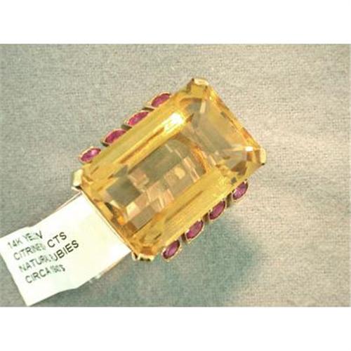 <tr><td>Title:Vinateg 50ct Citrine & Ruby 14k Y Gold Ring</td></tr>