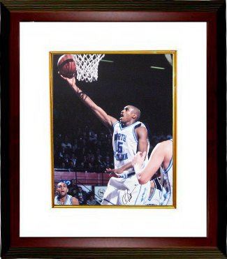 In 1995, Vince Carter began playing college basketball at North Carolina under Dean Smith and later, Bill Guthridge. During the 1997–1998 season, he was a member of new coach Guthridge's successful rotation with Antawn Jamison, Shammond Williams, Ed Cota, Ademola Okulaja, and Makhtar N'diaye. Vince Carter has hand autographed this North Carolina TarHeels 16x20 Photo. Mounted Memories Hologram and Certificate of Authenticity from Athlon Sports. Custom White Mat and Premium Mahogany Frame as shown.
